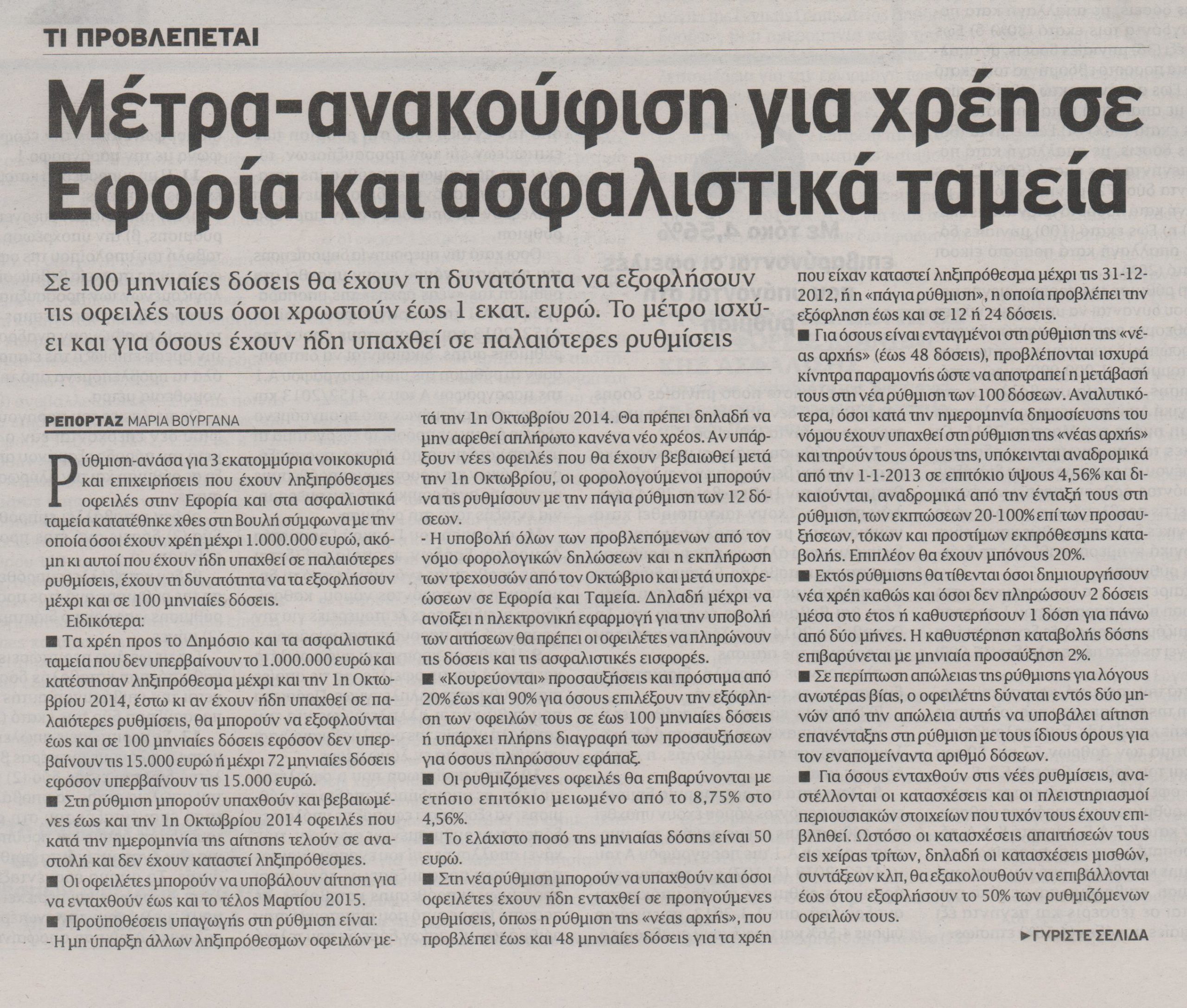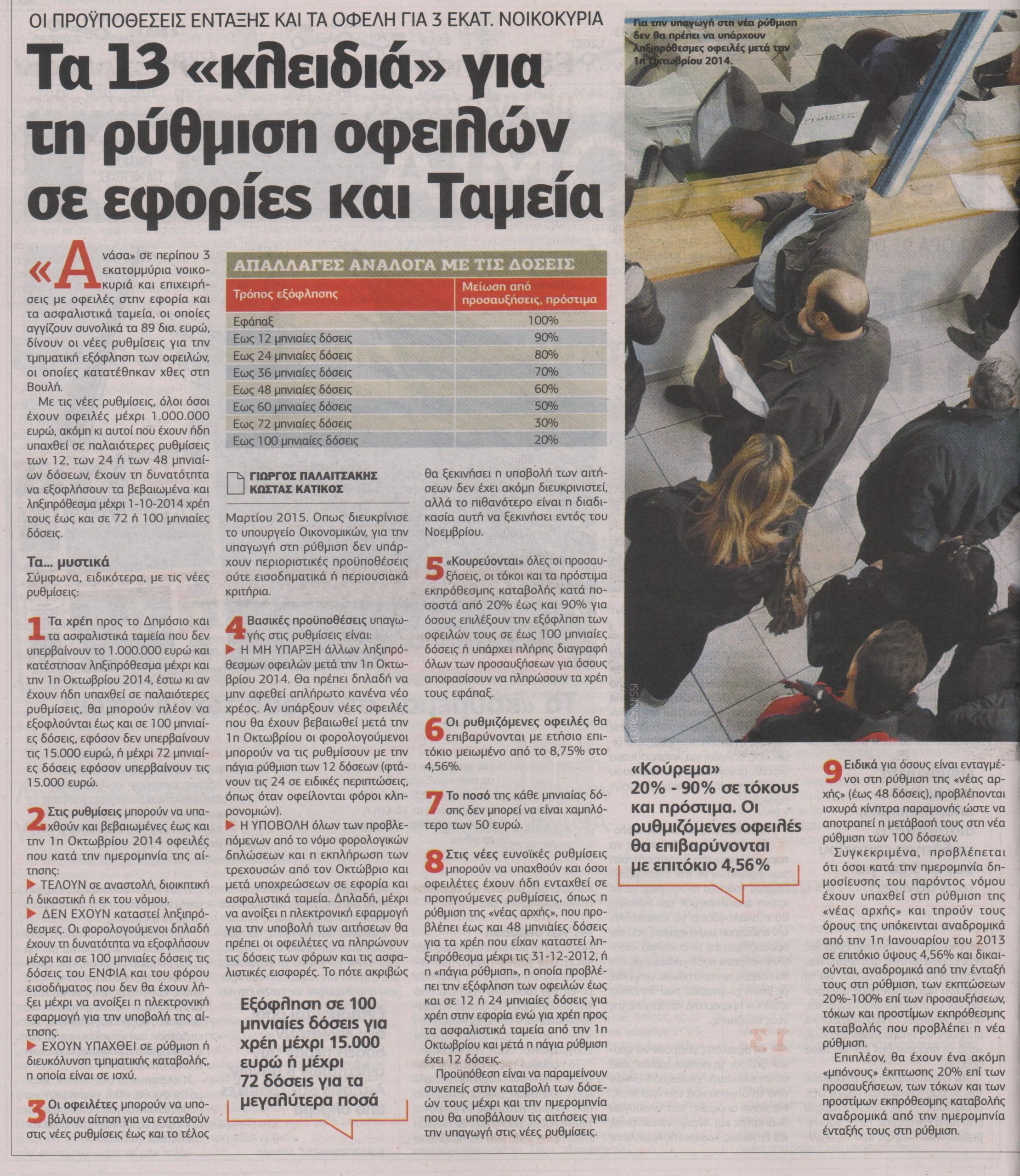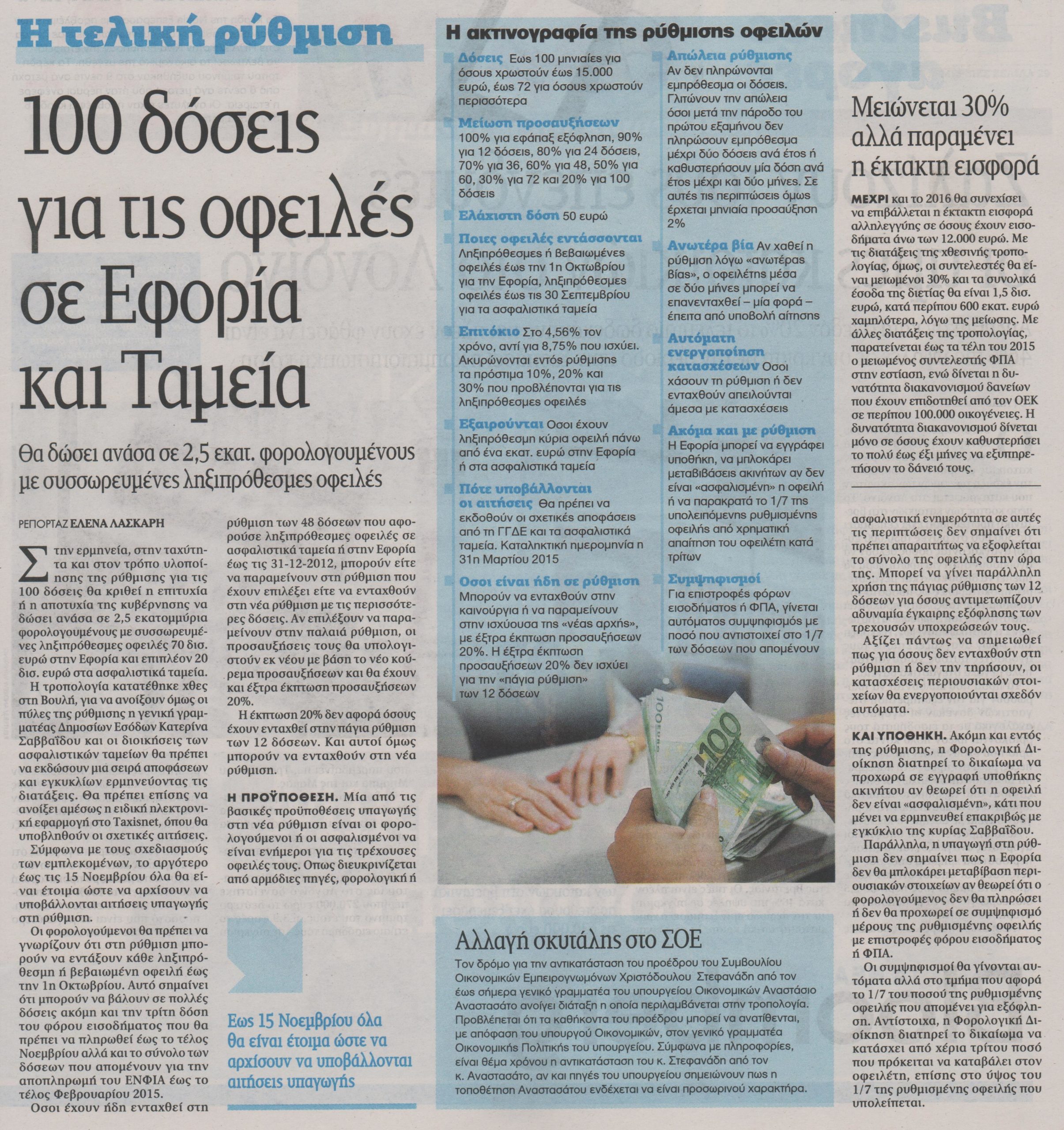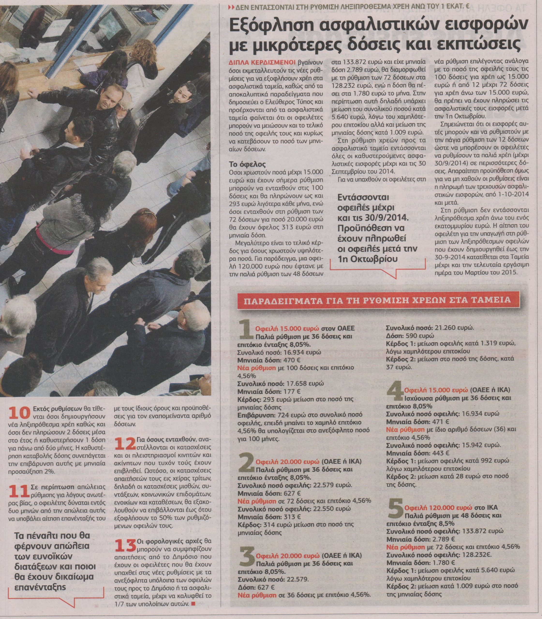 Δείτε παρακάτω αναλυτικά τα δημοσιεύματα για τις δόσεις από τις εφημερίδες «Τα ΝΕΑ», «Έθνος» και «Ελεύθερος Τύπος».