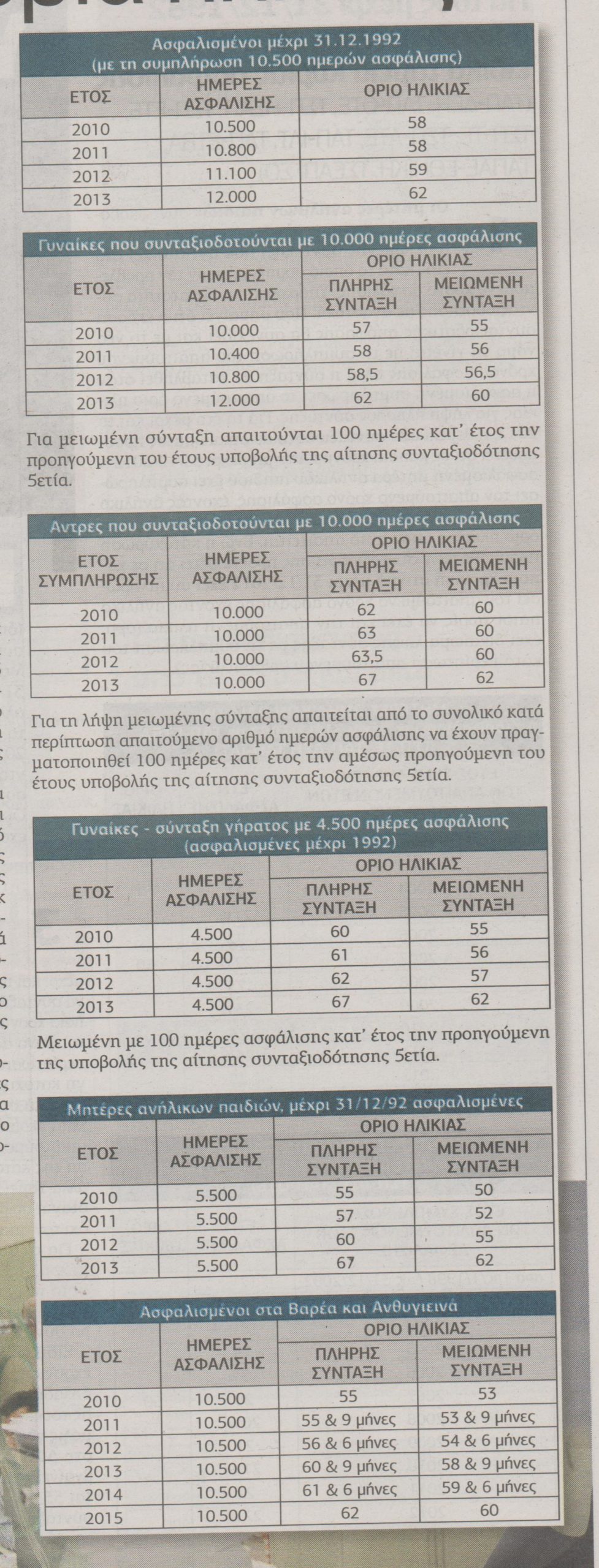 Δείτε τις προϋποθέσεις συνταξιοδότησης στους παρακάτω πίνακες:
