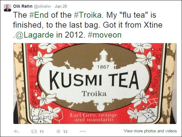 “Το τέλος της τρόικας“. Αυτό έγραψε ο Όλι Ρεν σε tweet που έκανε στις 28 Ιανουαρίου. Βεβαίως, ο πρώην Επίτροπος Οικονομικών και Νομισματικών Υποθέσεων της Ε.Ε. δεν εννοoύσε την γνωστή σε όλους τρόικα, αλλά ένα τσάι με αυτή την ονομασία.