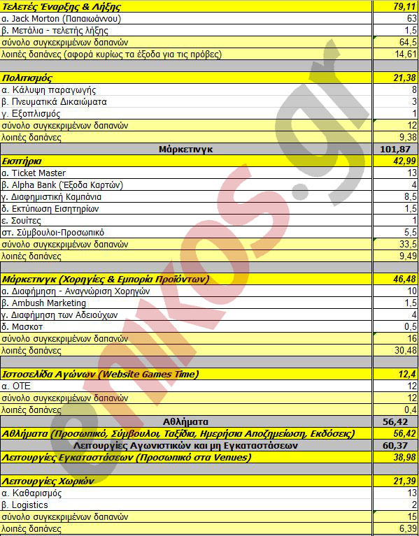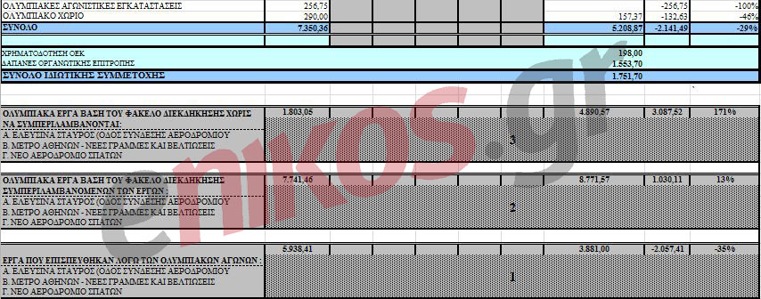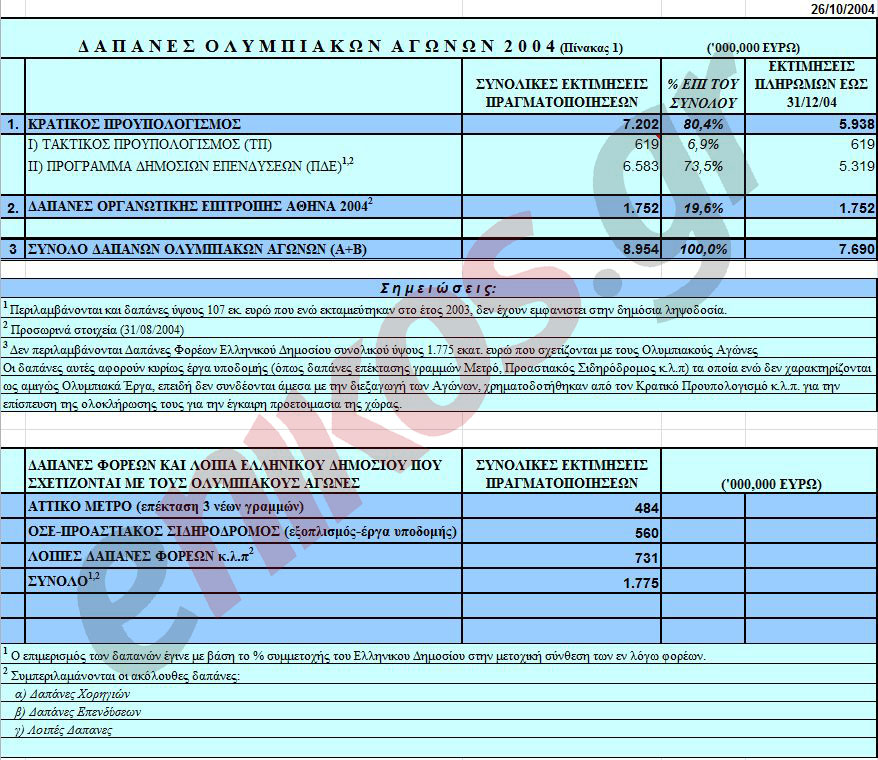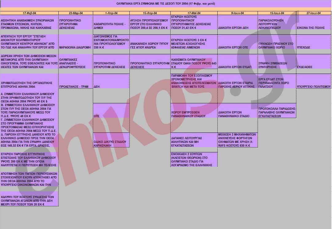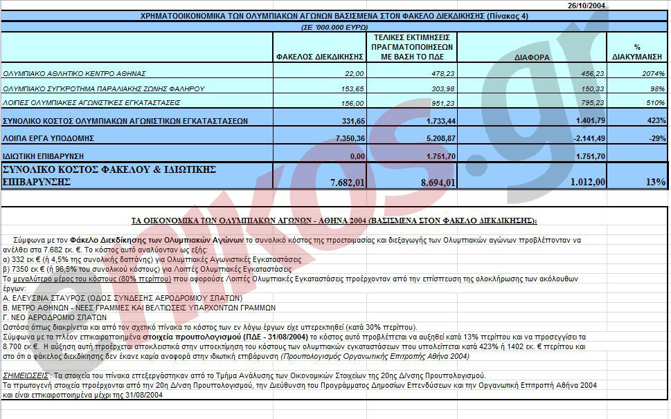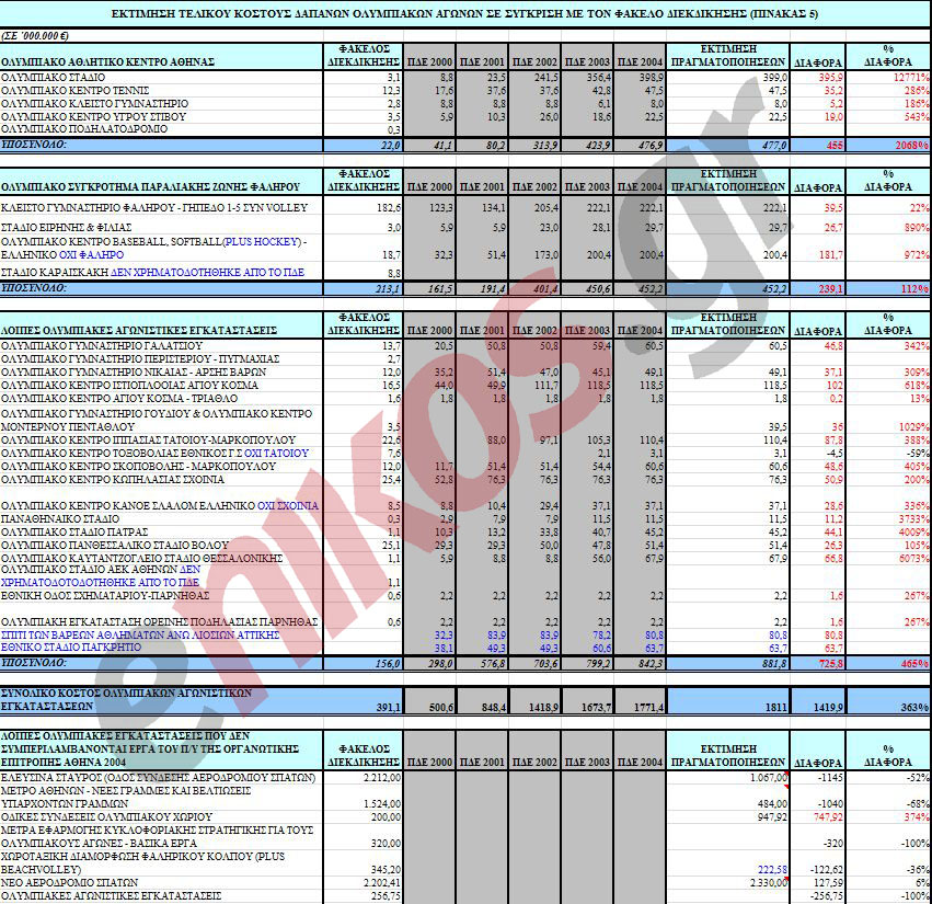 Διαβάστε τις υπερκοστολογήσεις που έγιναν στα έργα των Ολυμπιακών Αγώνων της Αθήνας. Είναι η λίστα που κατατέθηκε στη βουλή τον Δεκέμβριο του 2004