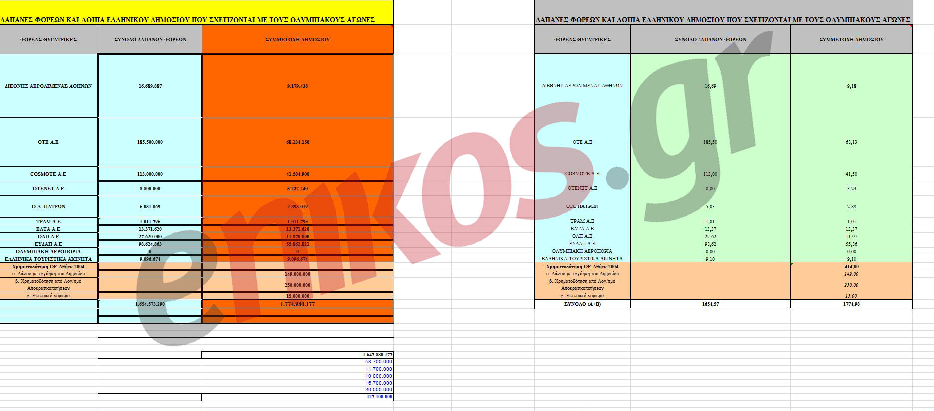 Ολόκληρη η λίστα με τις υπερκοστολογήσεις του 2004