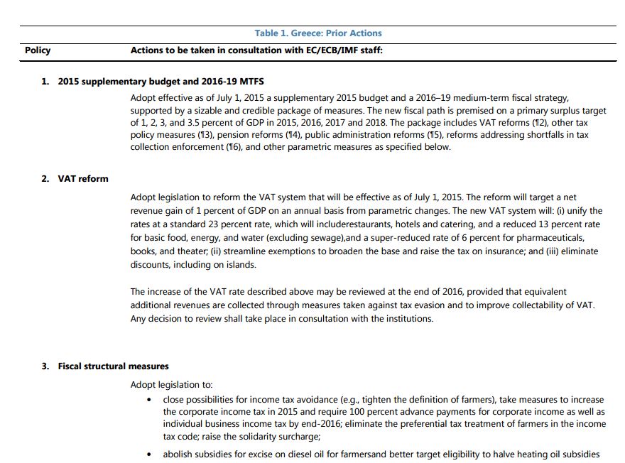 Αναφέρεται ωστόσο ότι το καθεστώς θα επανεξεταστεί στο τέλος του 2016, αν η Ελλάδα αποδείξει ότι έχει έσοδα από την καταπολέμηση της φοροδιαφυγής και την βελτίωση της εισπραξιμότητας του ΦΠΑ.