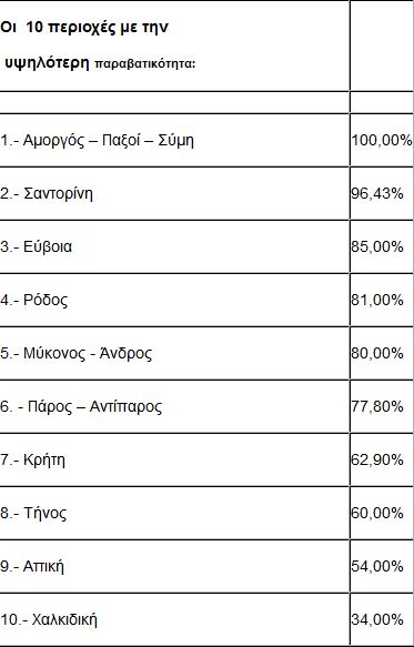 Οι δέκα (10) περιοχές με την υψηλότερη παραβατικότητα εiναι: