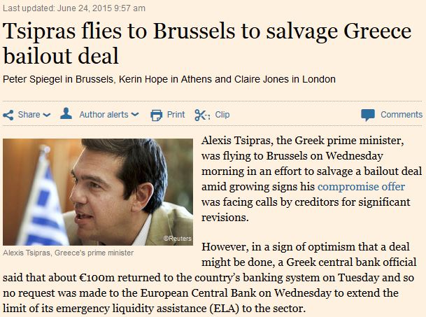 Το άρθρο των FT στο οποίο παραπέμπει ο Πίτερ Σπίγκελ αναφέρει: