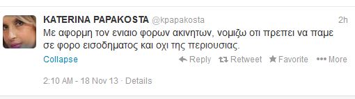 Η βουλευτής της Νέας Δημοκρατίας με μήνυμα στον προσωπικό της λογαριασμό στο twitter εκφράζει την αντίθεση της στη φορολόγηση της περιουσίας προτείνοντας τη φορολόγηση εισοδήματος.