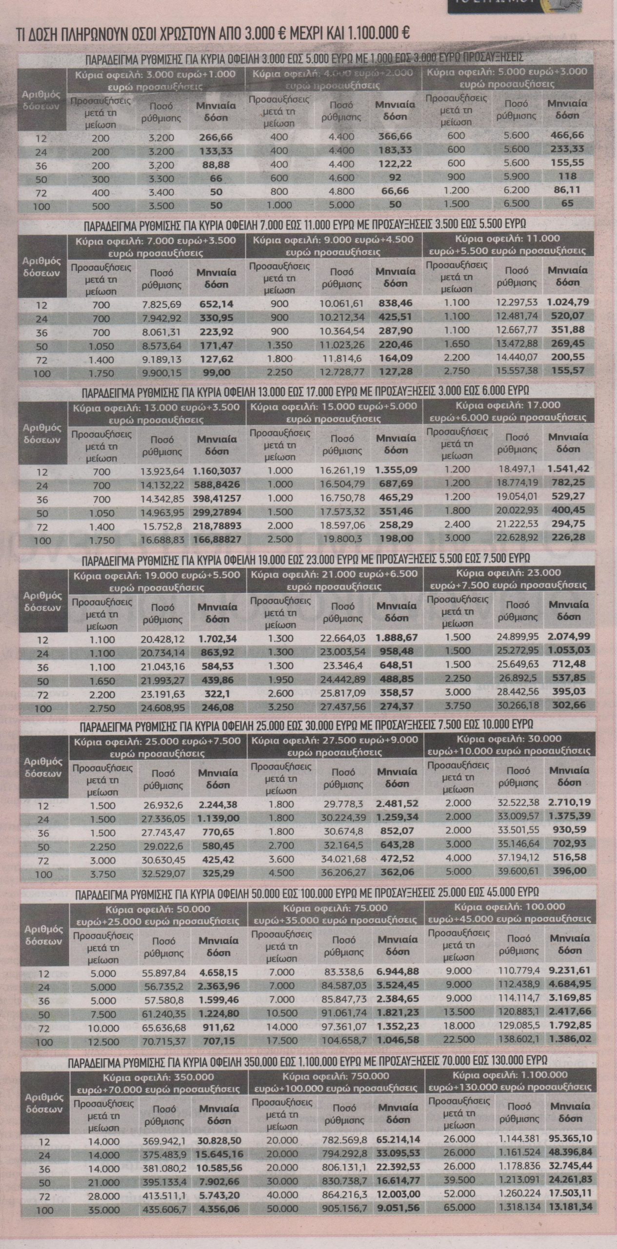 Δείτε τι δόση πληρώνουν όσοι χρωστούν από 3.000 ευρώ μέχρι και 1.100.000 ευρώ: