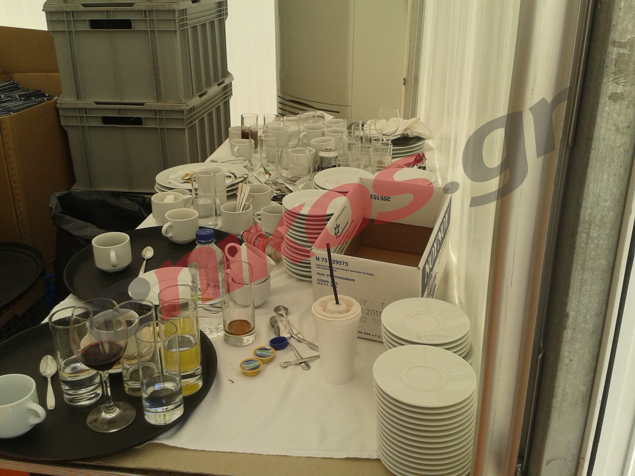 Όπως βλέπετε στις φωτογραφίες αυτό που… έμεινε από το Eurogroup είναι άδεια μπουκάλια κρασιού και μισοτελειωμένα ποτήρια με αναψυκτικά και κρασί.