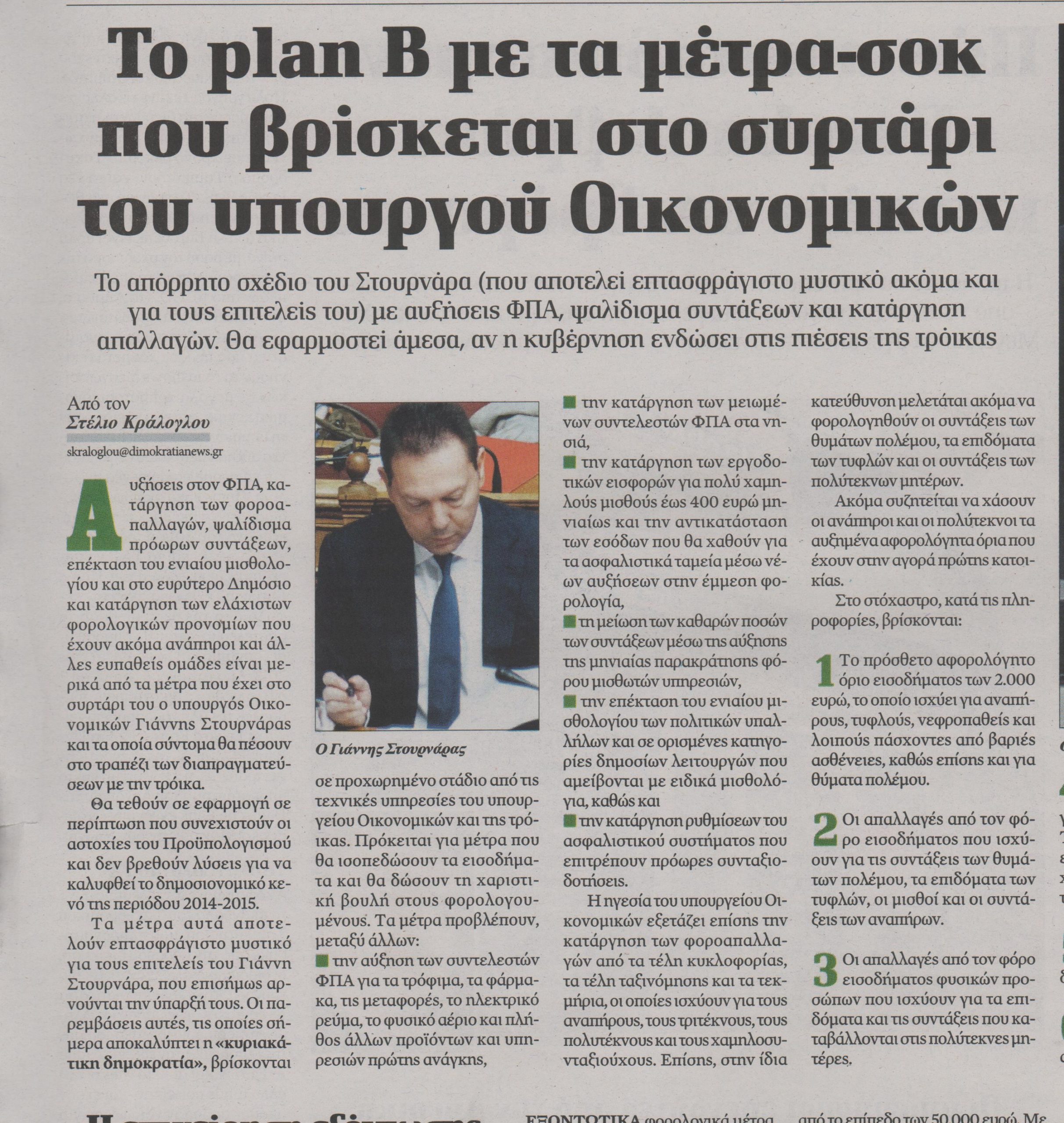 Plan B με μέτρα-σοκ στο συρτάρι του Στουρνάρα