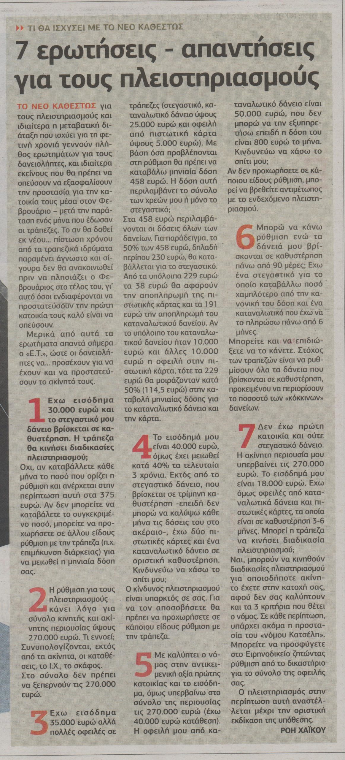 Μερικά από αυτά τα ερωτήματα απαντά σήμερα ο Ε.Τ ώστε οι δανειολήπτες να… προσέχουν για να έχουν και να προστατεύσουν το ακίνητό τους.