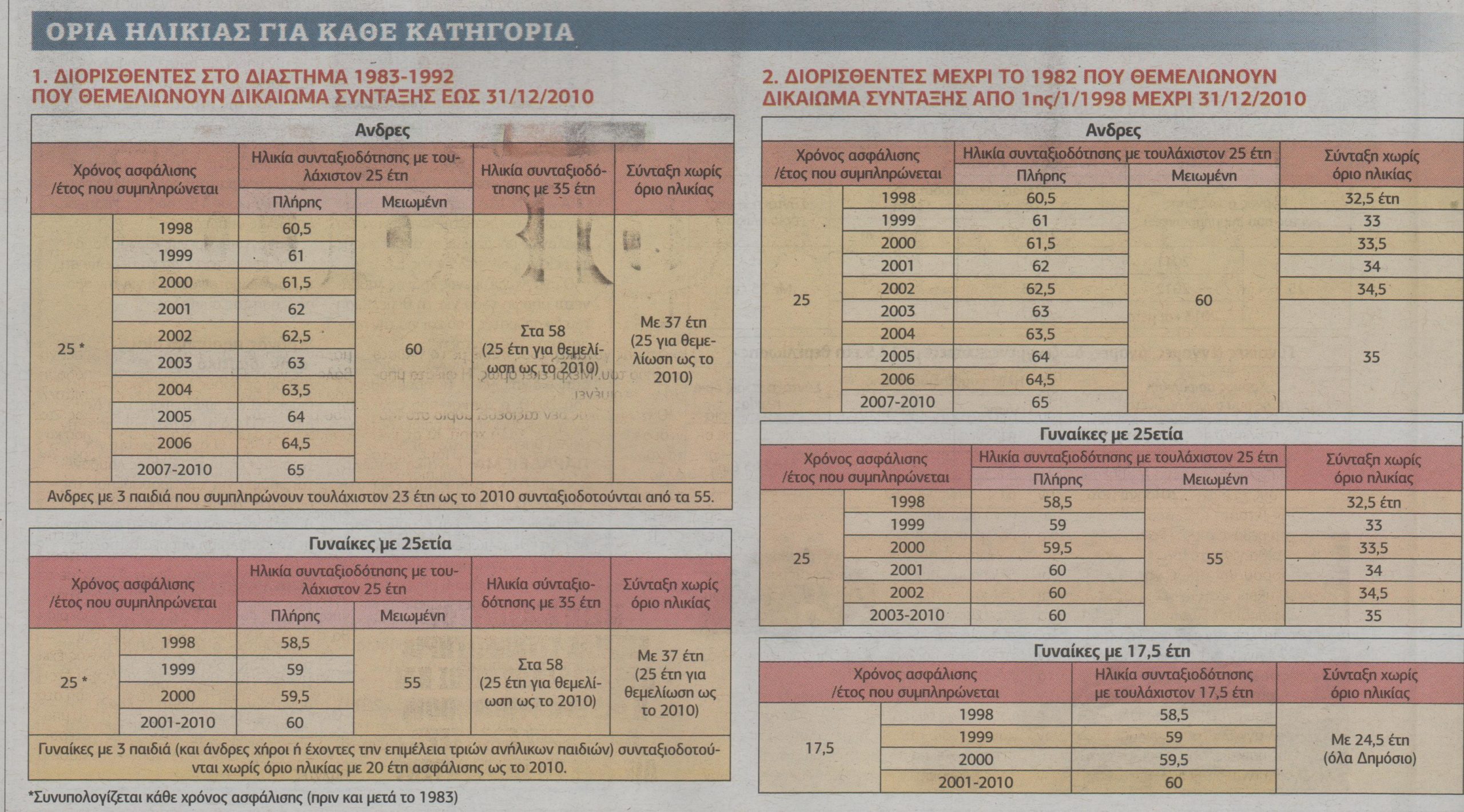 Πλήρης σύνταξη από τα 50-Πίνακες