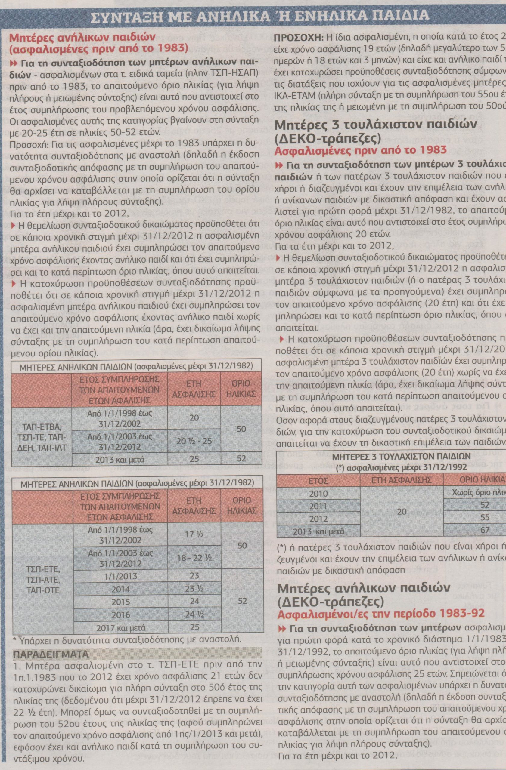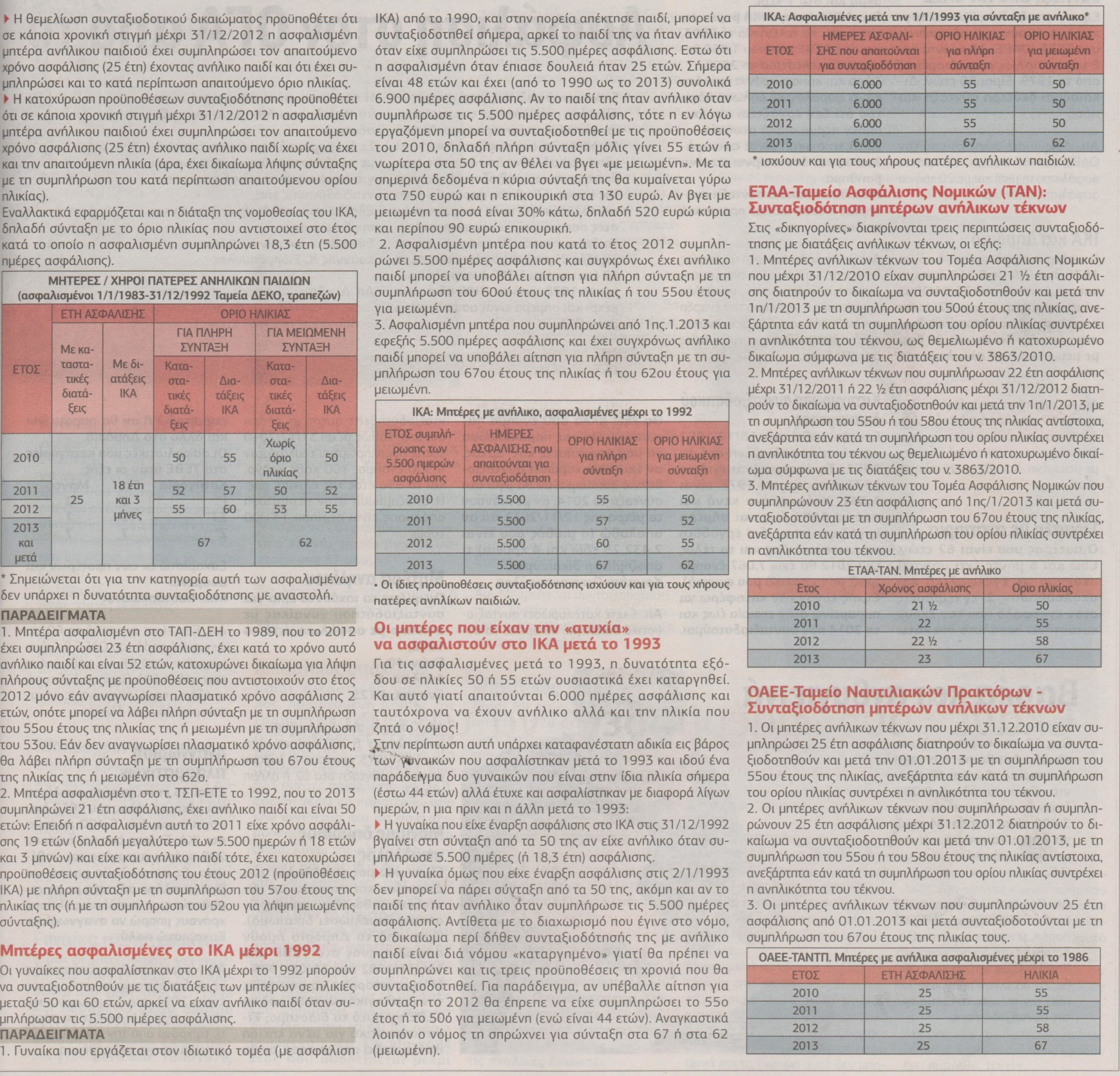 Πλήρης σύνταξη στα 50 για 400.000 γονείς-Αναλυτικά παραδείγματα και πίνακες