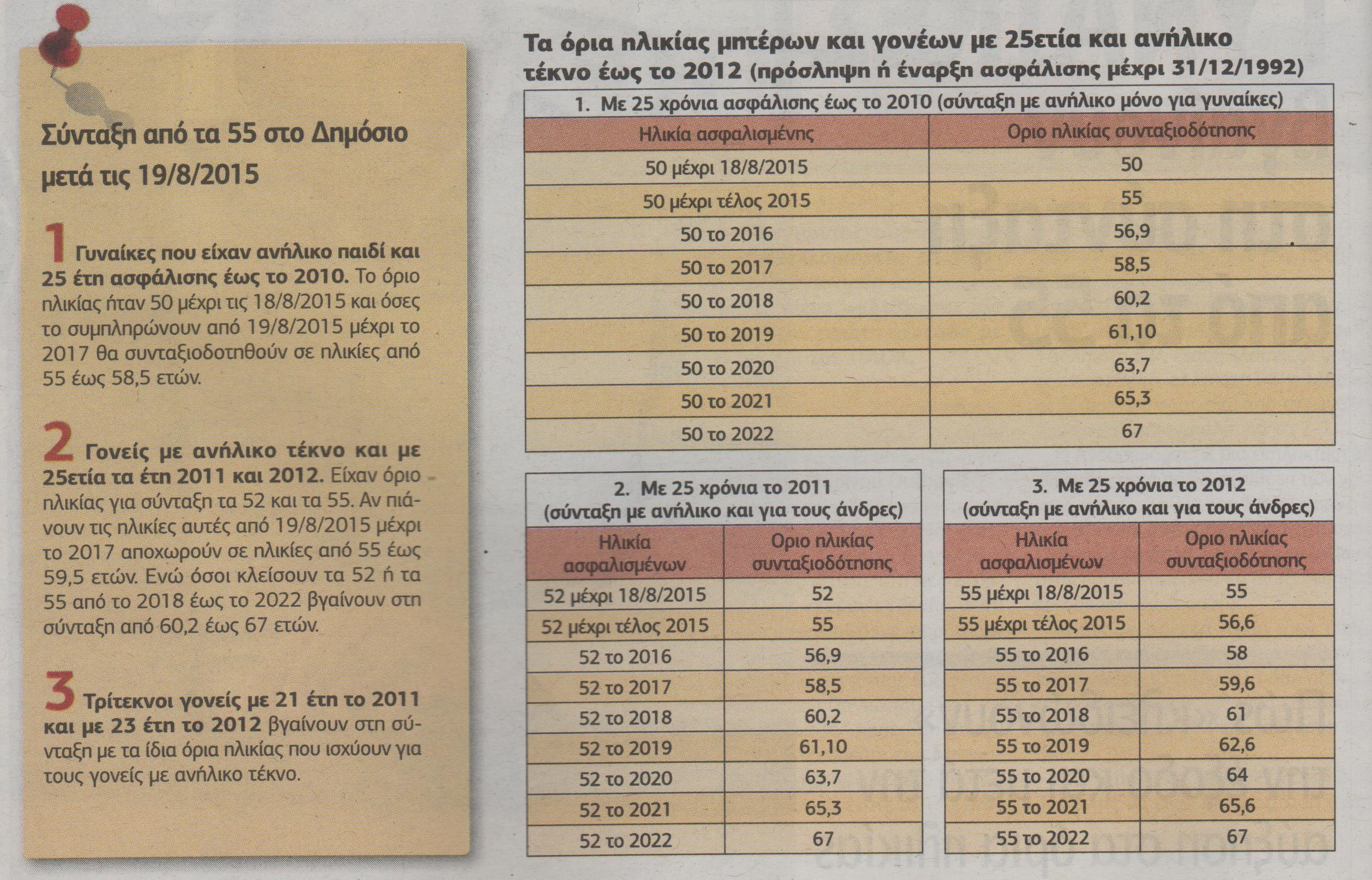 • Είτε από τα 50 με ανήλικο παιδί και 25ετία συμπληρωμένη έως το 2020.