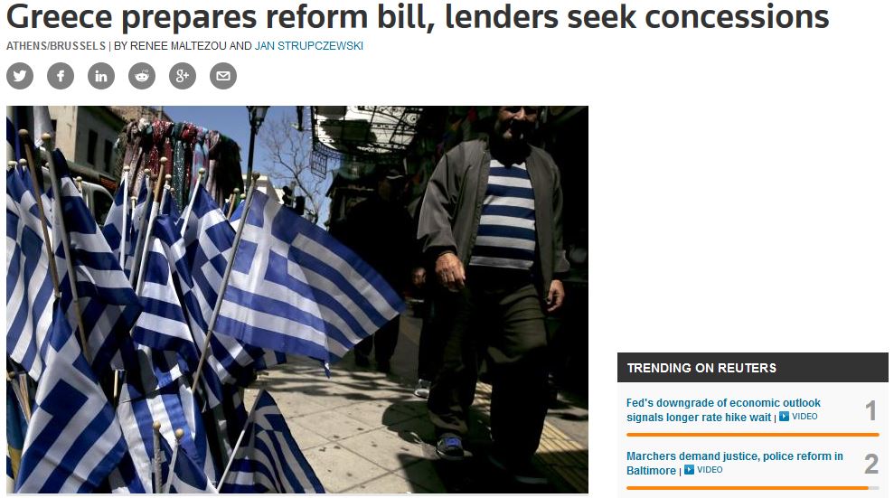 Η συζήτηση της Ελλάδας με τους δανειστές με βάση το πολυνομοσχέδιο, που αναμένεται να γίνει στο Brussels Group, θέλει να υπογραμμίσει ότι η κυβέρνηση έχει σοβαρή πρόθεση να προχωρήσει, μετά τις κατηγορίες των δανειστών ότι σέρνει τα πόδια της και δεν οδηγεί στην επίτευξη συμφωνία, σημειώνει το Reuters.