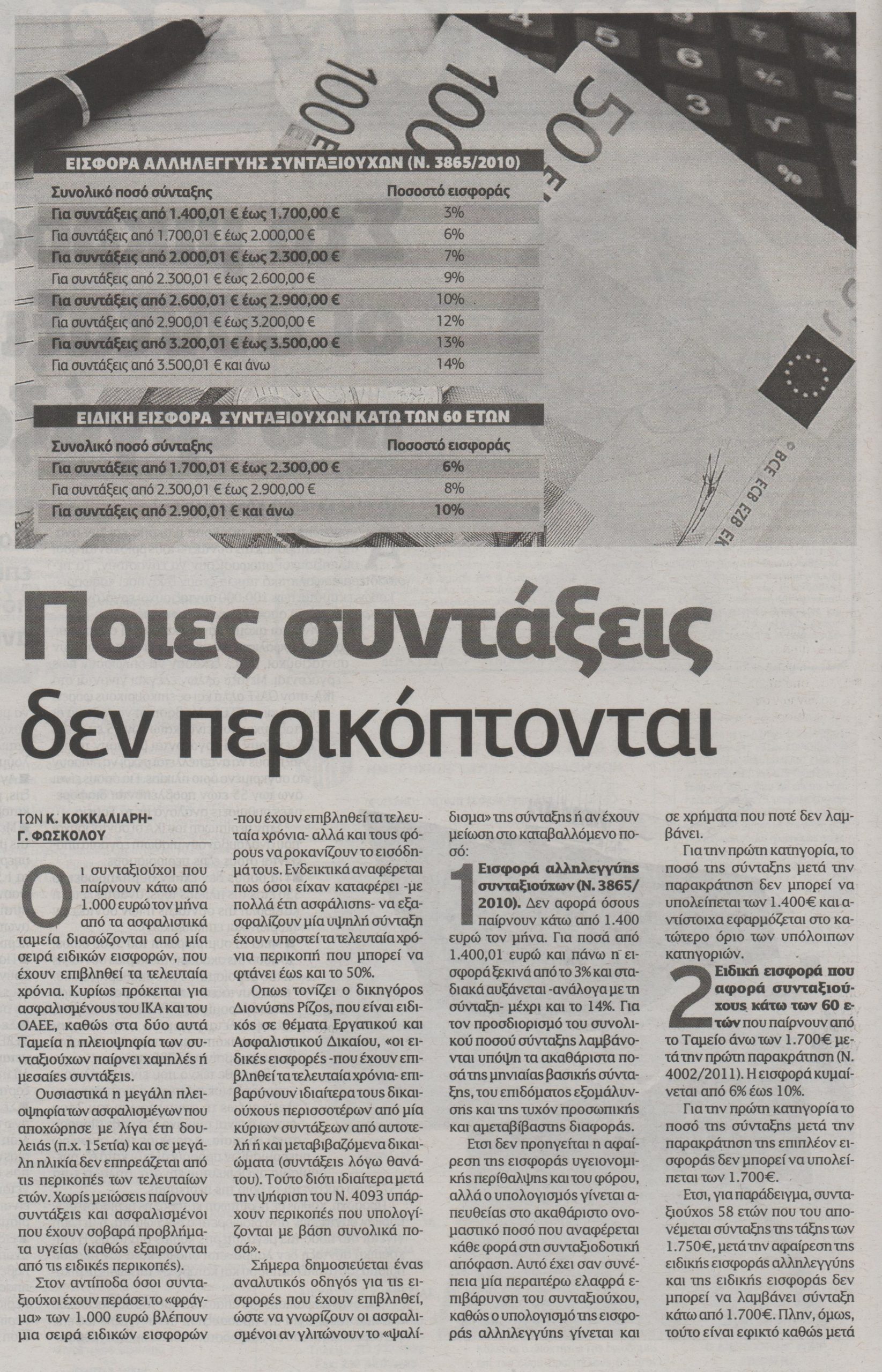 Η εφημερίδα Έθνος δημοσιεύει έναν αναλυτικό οδηγό για τις εισφορές που έχουν επιβληθεί ώστε να γνωρίζουν οι ασφαλισμένοι αν γλιτώνουν το «ψαλίδισμα» της σύνταξης ή αν έχουν μείωση στο καταβαλλόμενο ποσό.
