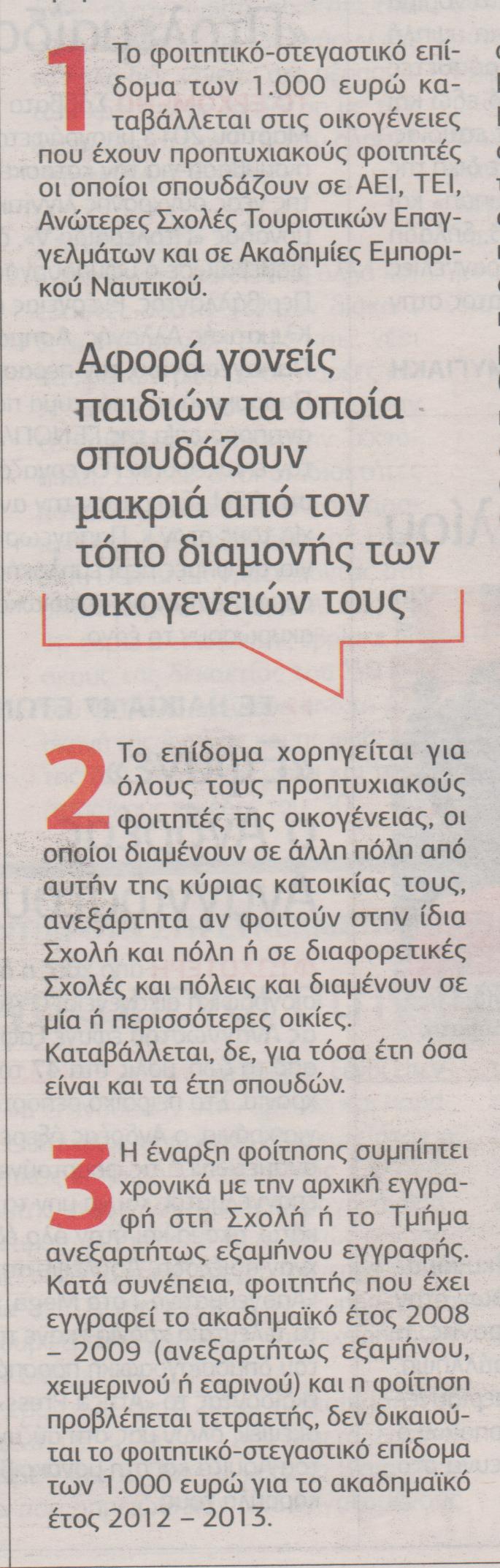 Τη δυνατότητα να λάβουν το στεγαστικό επίδομα των 1000 ευρώ έχουν και φέτος εκατοντάδες χιλιάδες γονείς παιδιών τα οποία σπουδάζουν μακριά από τον τόπο διαμονής των οικογενειών τους.