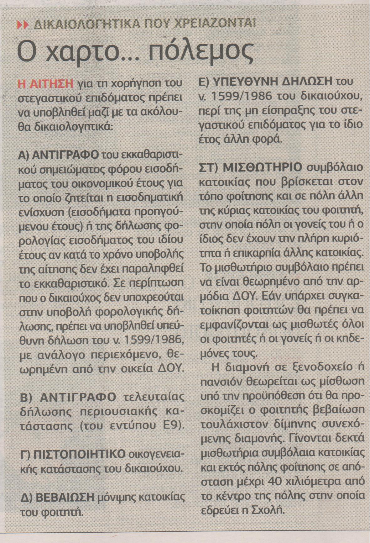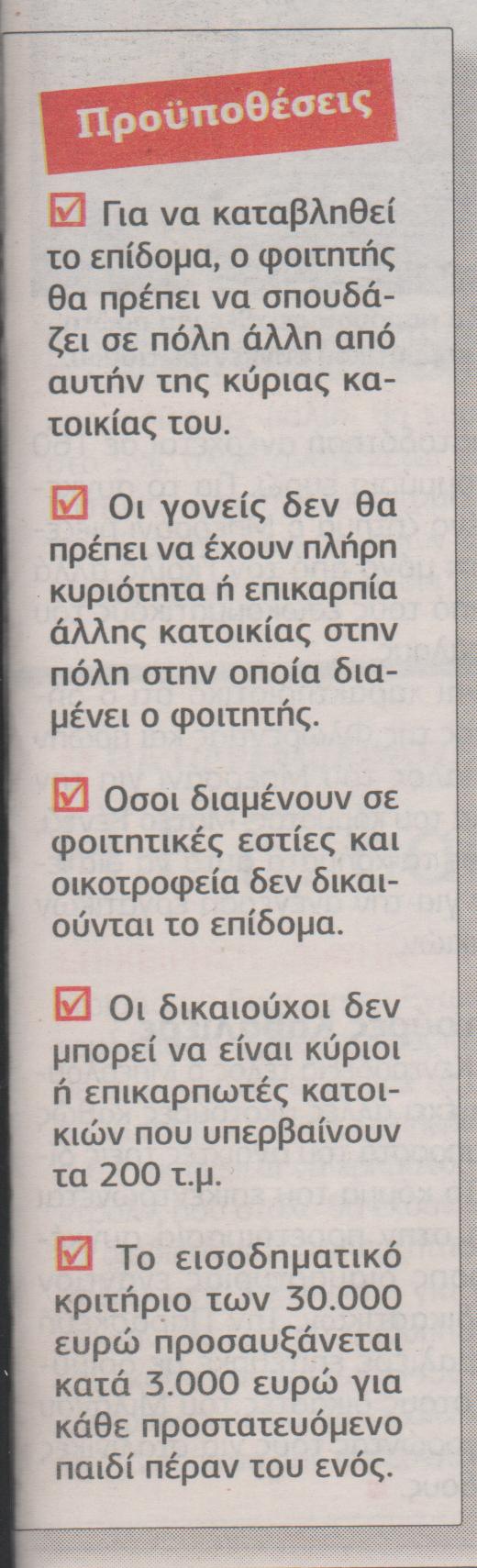 Ποιοι δικαιούνται φοιτητικό-στεγαστικό επίδομα