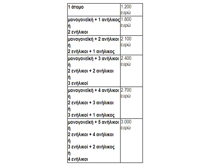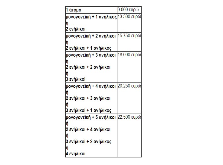 ii. Το συνολικό ύψος εισοδήματος δεν υπερβαίνει τα 9.000 ευρώ, ποσό που προσαυξάνεται κατά 50% για κάθε επιπλέον ενήλικο μέλος του νοικοκυριού και κατά 25% για κάθε ανήλικο μέλος”.