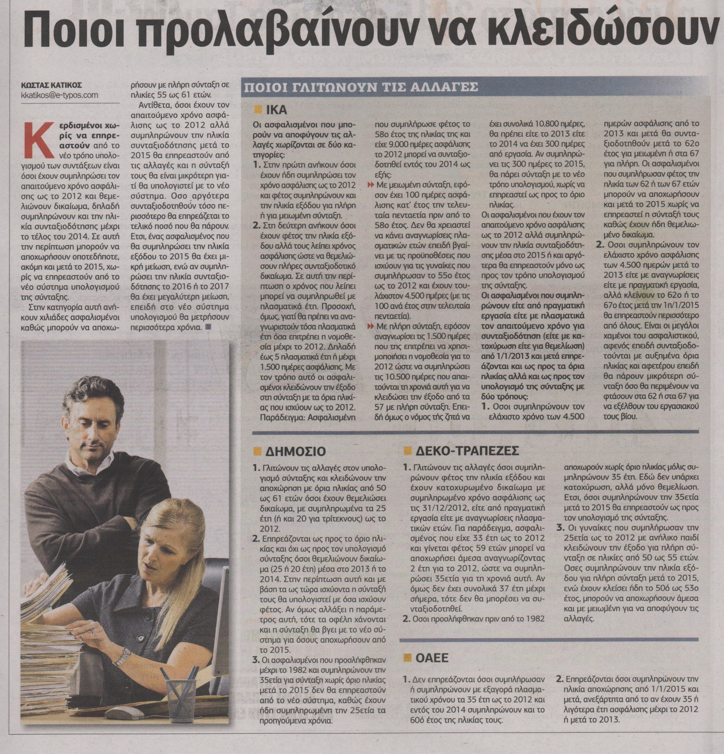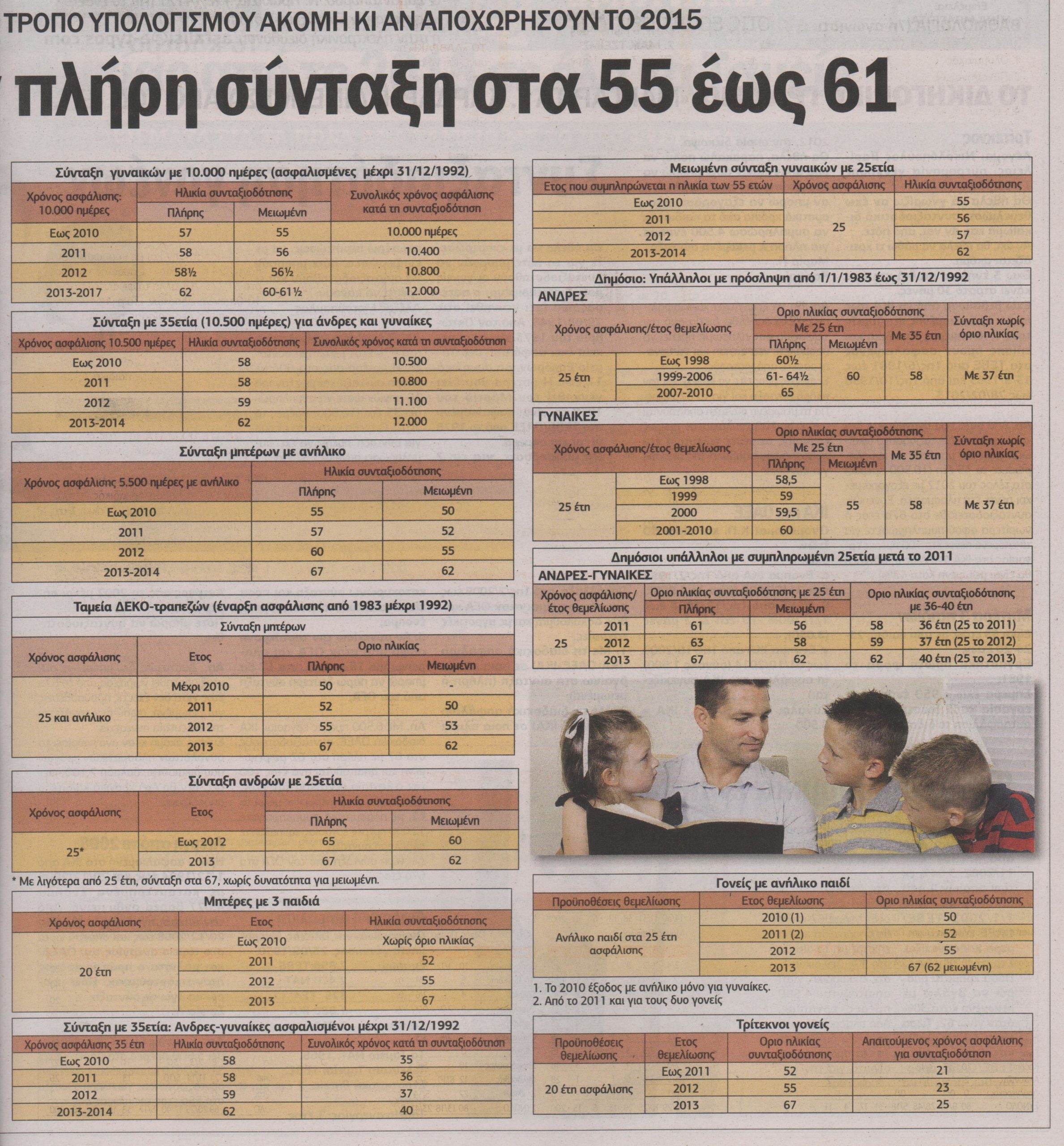 Στην κατηγορία αυτή ανήκουν χιλιάδες ασφαλισμένοι καθώς μπορούν να αποχωρήσουν με πλήρη σύνταξη σε ηλικίες 55 ως 61 χρονών.