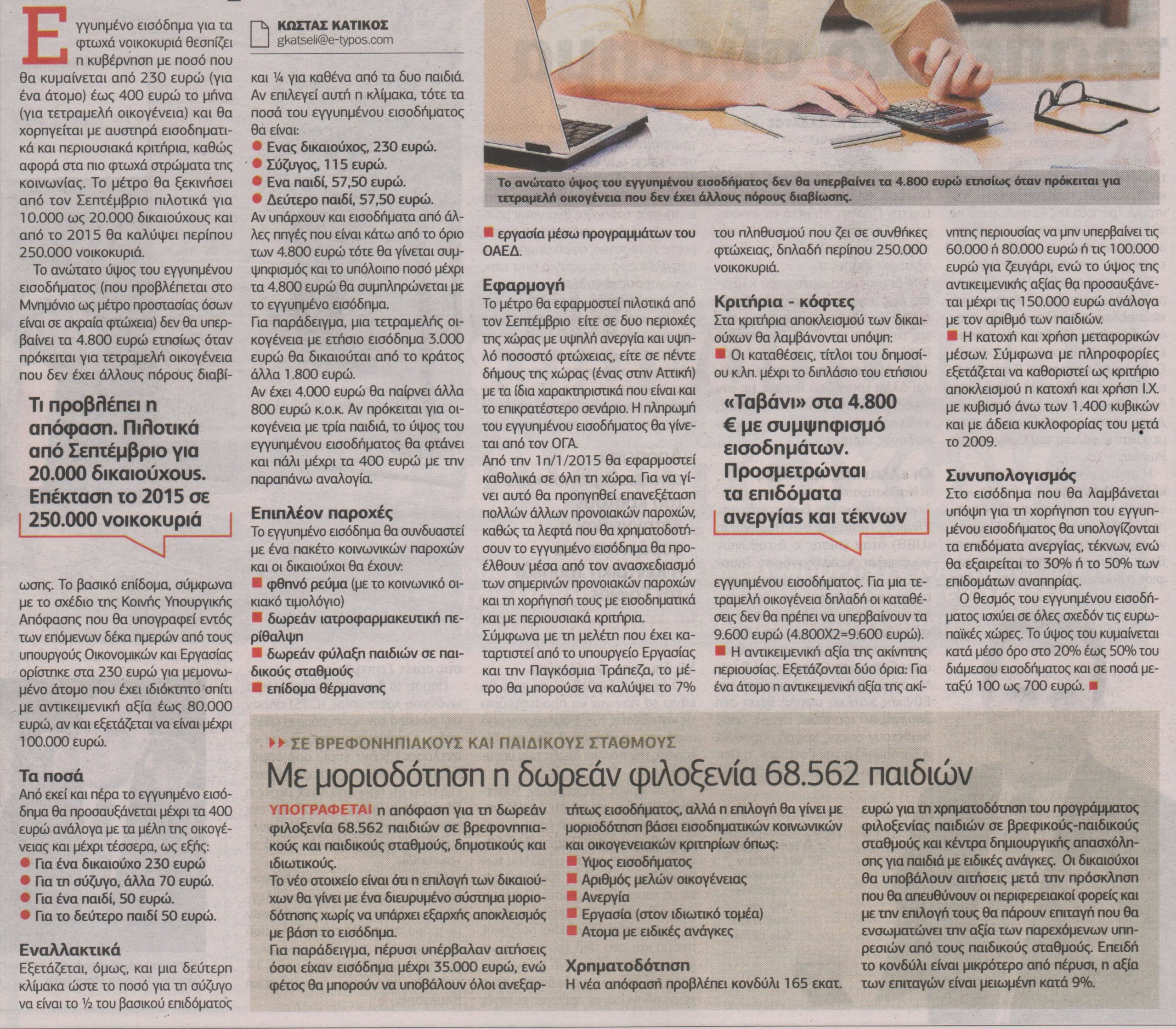 Ποιοι θα εξασφαλίσουν εγγυημένο εισόδημα