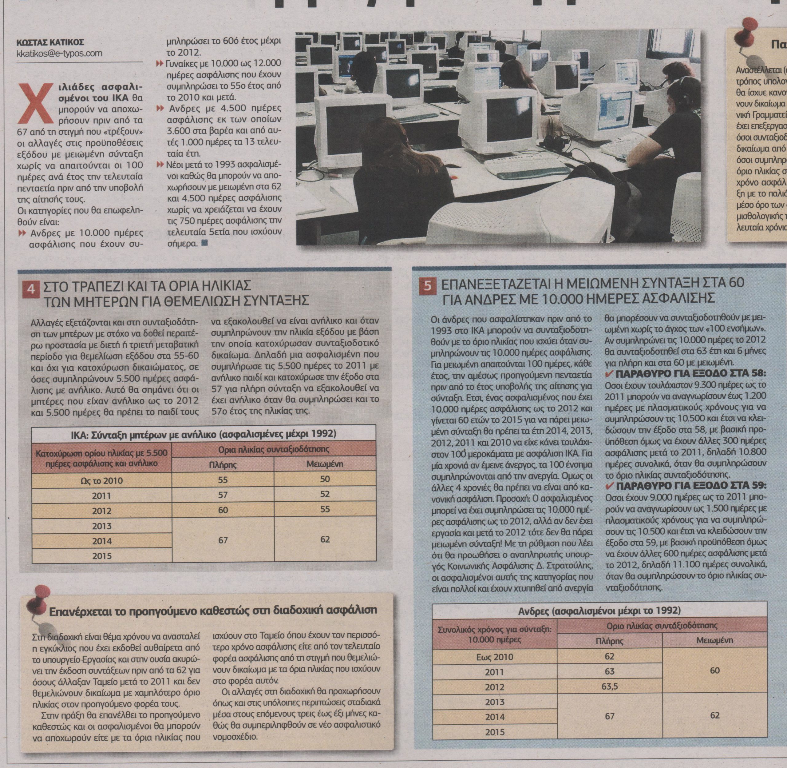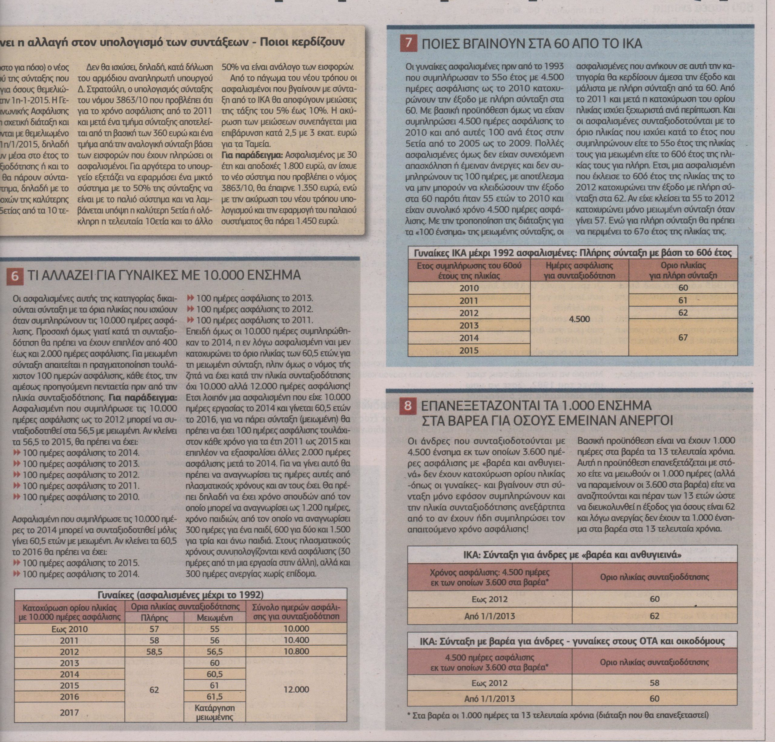 -Νέοι μετά το 1993 ασφαλισμένοι καθώς θα μπορούν να αποχωρήσουν με μειωμένη σύνταξη στα 62 και 4.500 ημέρες ασφάλισης χωρίς να χρειάζεται να έχουν τις 750 ημέρες ασφάλισης την τελευταία 5ετία που ισχύουν σήμερα.