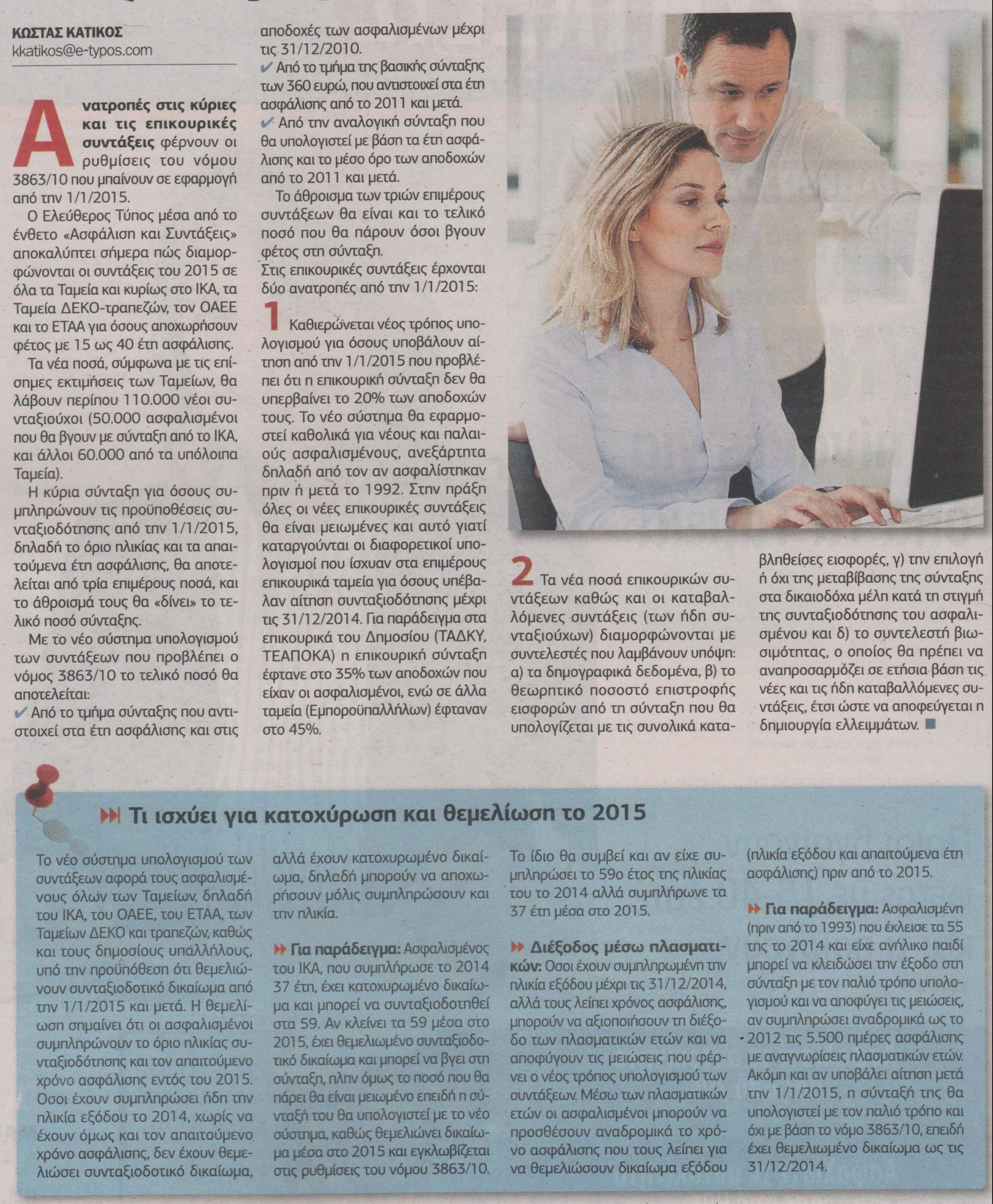Ανατροπές στις κύριες και τις επικουρικές συντάξεις φέρνουν οι ρυθμίσεις του νόμου 3863/10 που μπαίνουν σε εφαρμογή από την 1/1/2015.