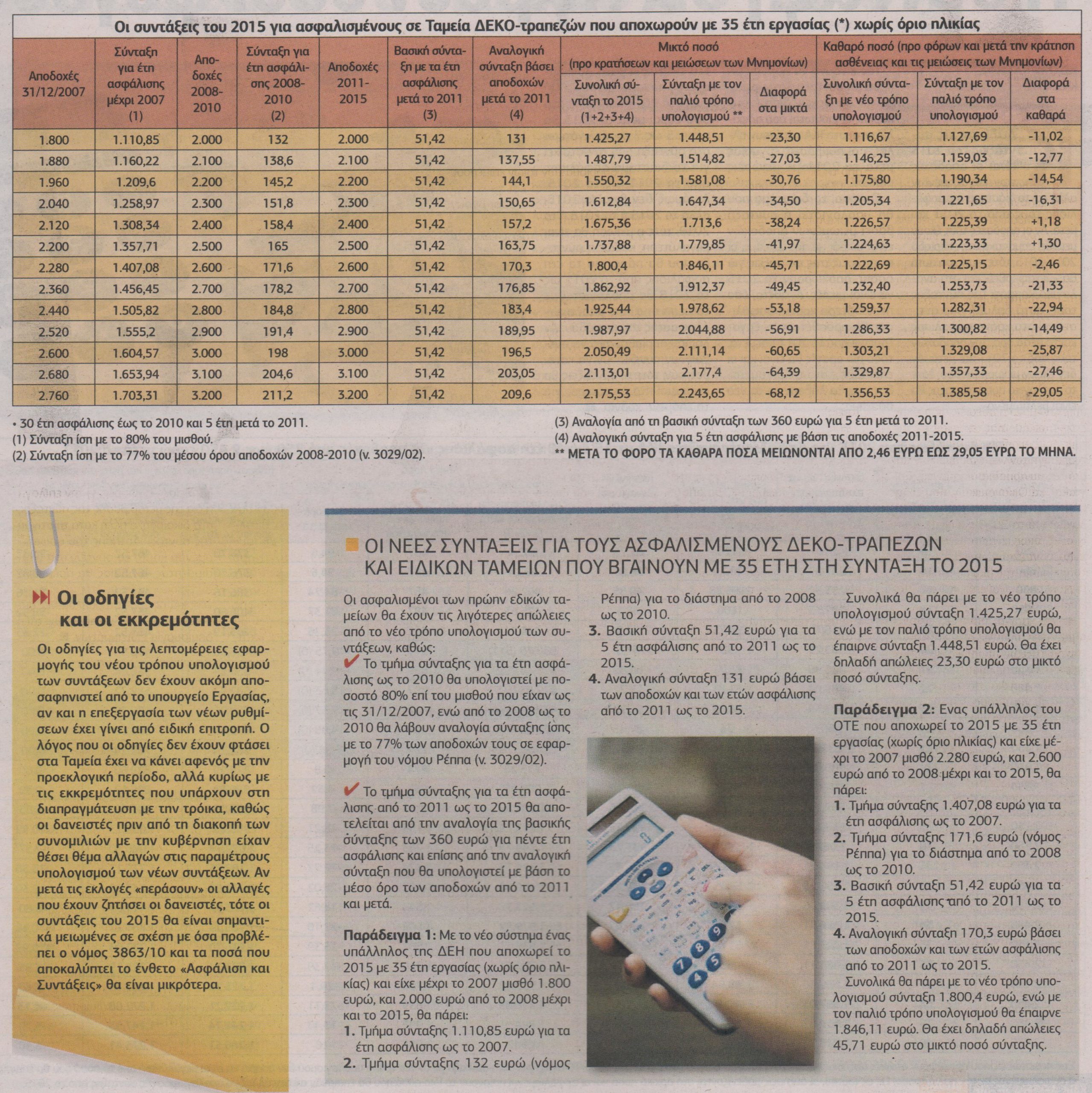 Πως διαμορφώνονται οι συντάξεις του 2015