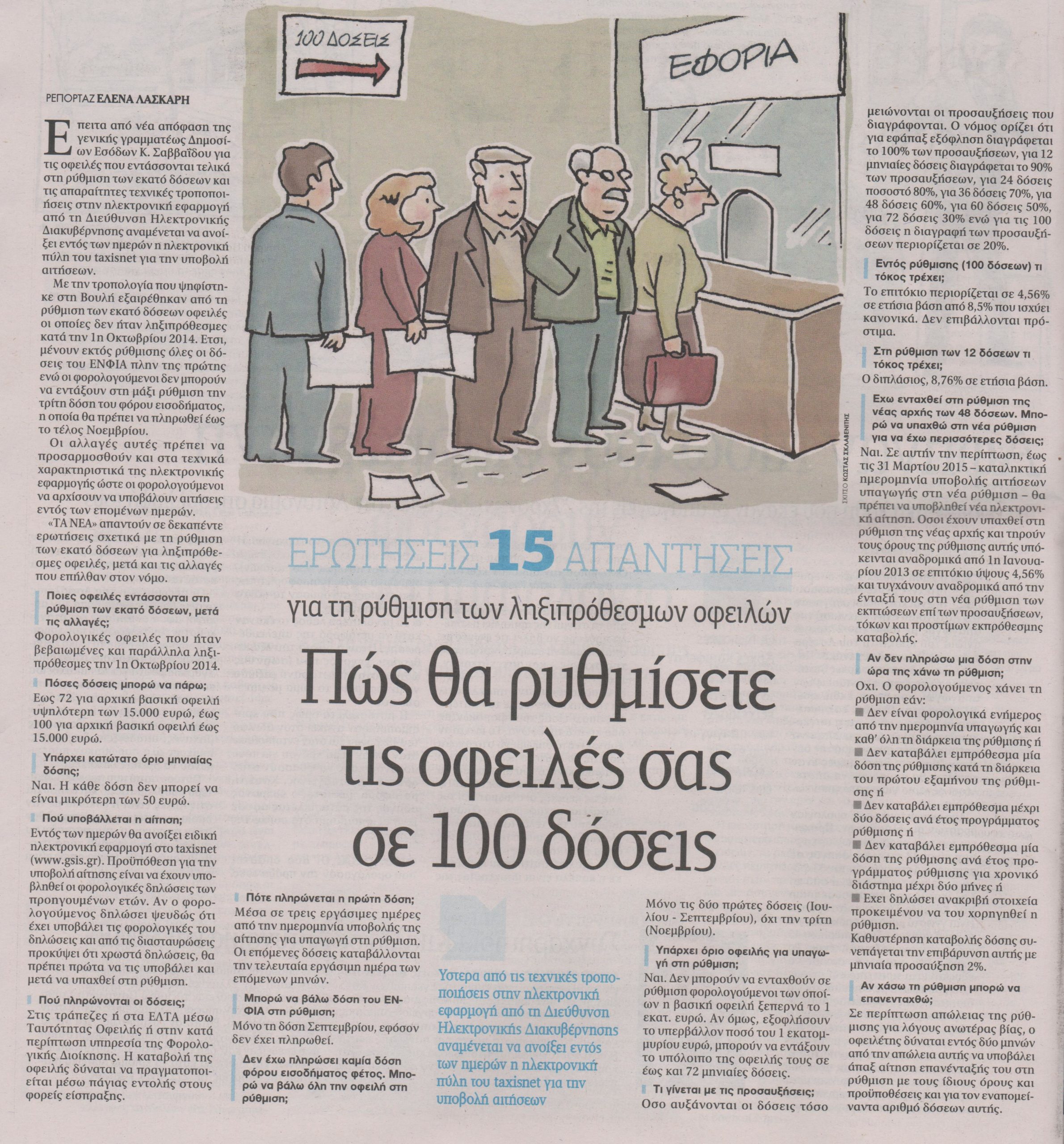 Έπειτα από νεά απόφαση της γενικής γραμματέως Δημοσίου Εσόδων κ. Σαββαϊδου για τις οφειλές που εντάσσονται τελικά στη ρύθμιση των εκατό δόσεων και τις απαραίτητες τεχνικές τροποποιήσεις στην ηλεκτρονική εφαρμογή από τη Διεύθυνση Ηλεκτρονικής Διακυβέρνησης αναμένεται να ανοίξει εντός των ημερών η ηλεκτρονική πύλη του taxisnet για την υποβολή αιτήσεων.