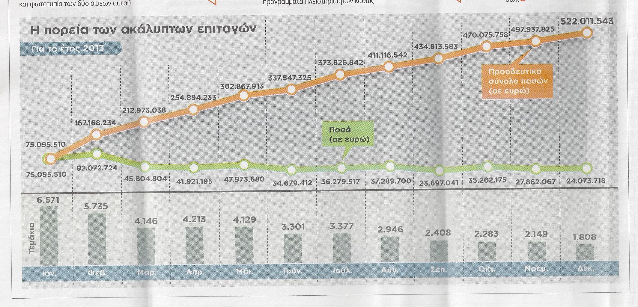 Το 2013 οι ακάλυπτες επιταγές ξεπέρασαν τα 43.000 τεμάχια, αξίας άνω των 522 εκατ. ευρώ.
