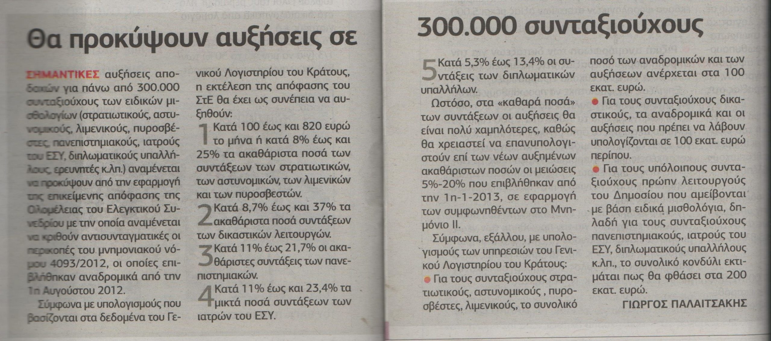 Πόσα κερδίζουν οι συνταξιούχοι των ειδικών μισθολογίων