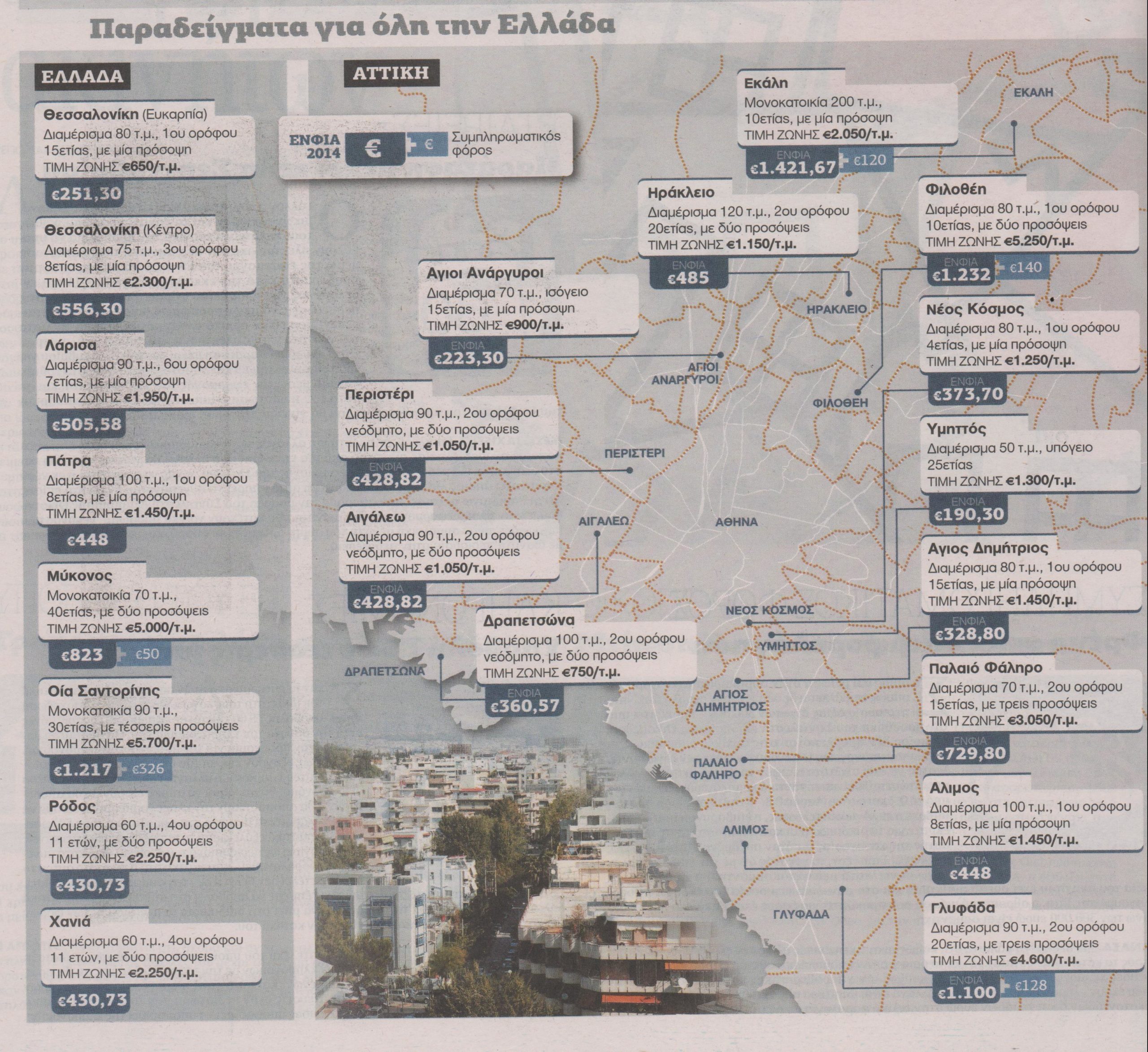 Λεπτομερή παραδείγματα για το φόρο που θα πληρώσουν εκατομμύρια ιδιοκτήτες ακινήτων ανά την Ελλάδα δίνουν «ΤΑ ΝΕΑ», συνυπολογίζοντας τα νέα δεδομένα που φέρνουν οι αλλαγές του υπουργείου Οικονομικών.