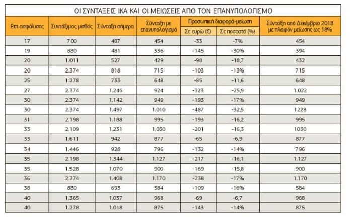 Τα νέα ποσά μετά τον επανυπολογισμό δείχνουν μειώσεις ως 32,5%