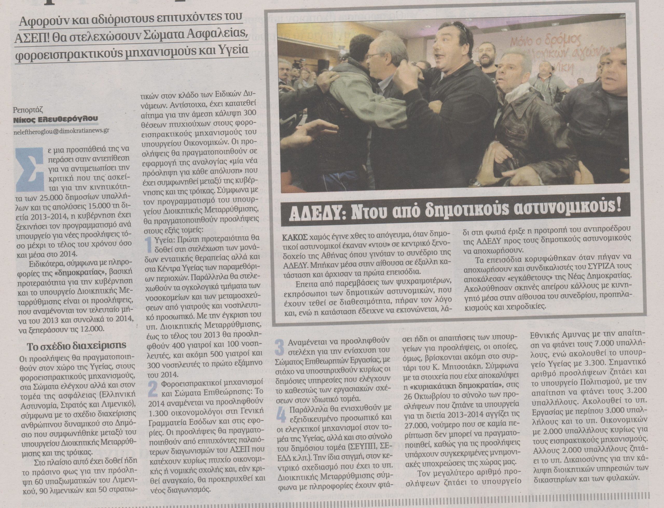 Ειδικότερα, σύμφωνα με πληροφορίες της δημοκρατίας, βασική προτεραιότητα για την κυβέρνηση και το υπουργείο Διοικητικής Μεταρρύθμισης είναι οι προσλήψεις, που αναμένονται τον τελευταίο μήνα του 2013 και συνολικά το 2014, να ξεπεράσουν τις 12.000.