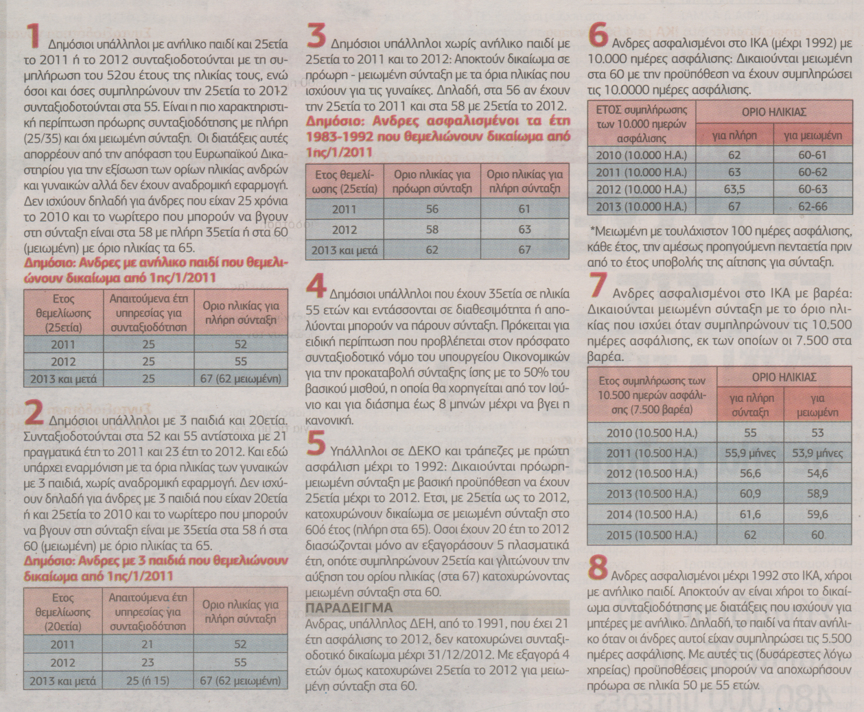 Οι διατάξεις για την πρόωρη σύνταξη των ανδρών αφορούν σε οκτώ βασικές κατηγορίες εργαζομένων που είναι ασφαλισμένοι στο Δημόσιο, σε ταμεία ΔΕΚΟ και Τραπεζών, καθώς και στο ΙΚΑ (χήροι πατέρες με ανήλικο).