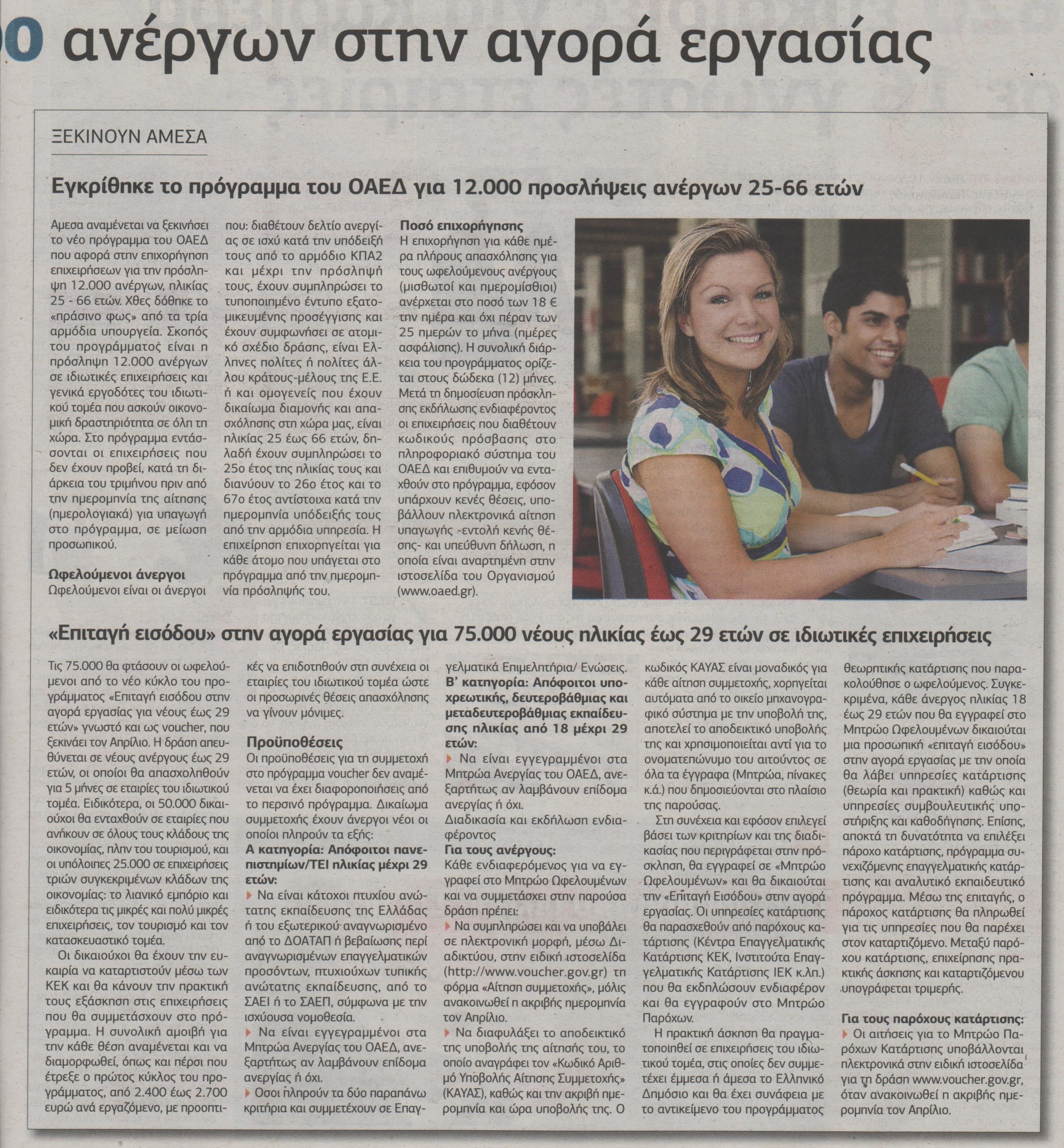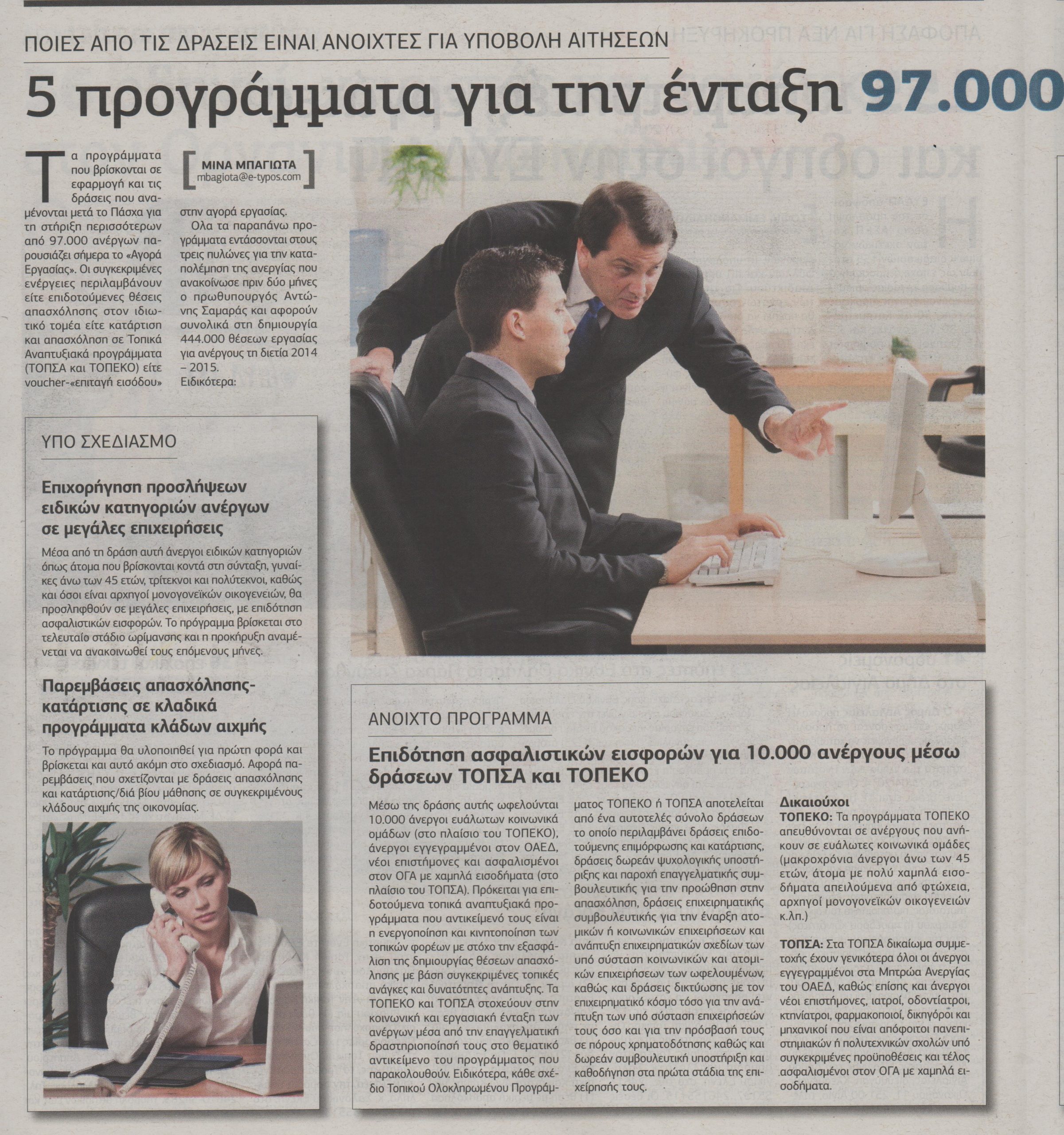 Δείτε εδώ τα προγράμματα που βρίσκονται σε εφαρμογή και τις δράσεις που αναμένονται μετά το Πάσχα για τη στήριξη περισσοτέρων από 97.000 ανέργων που παρουσιάζει σήμερα ο Ελεύθερος Τύπος.