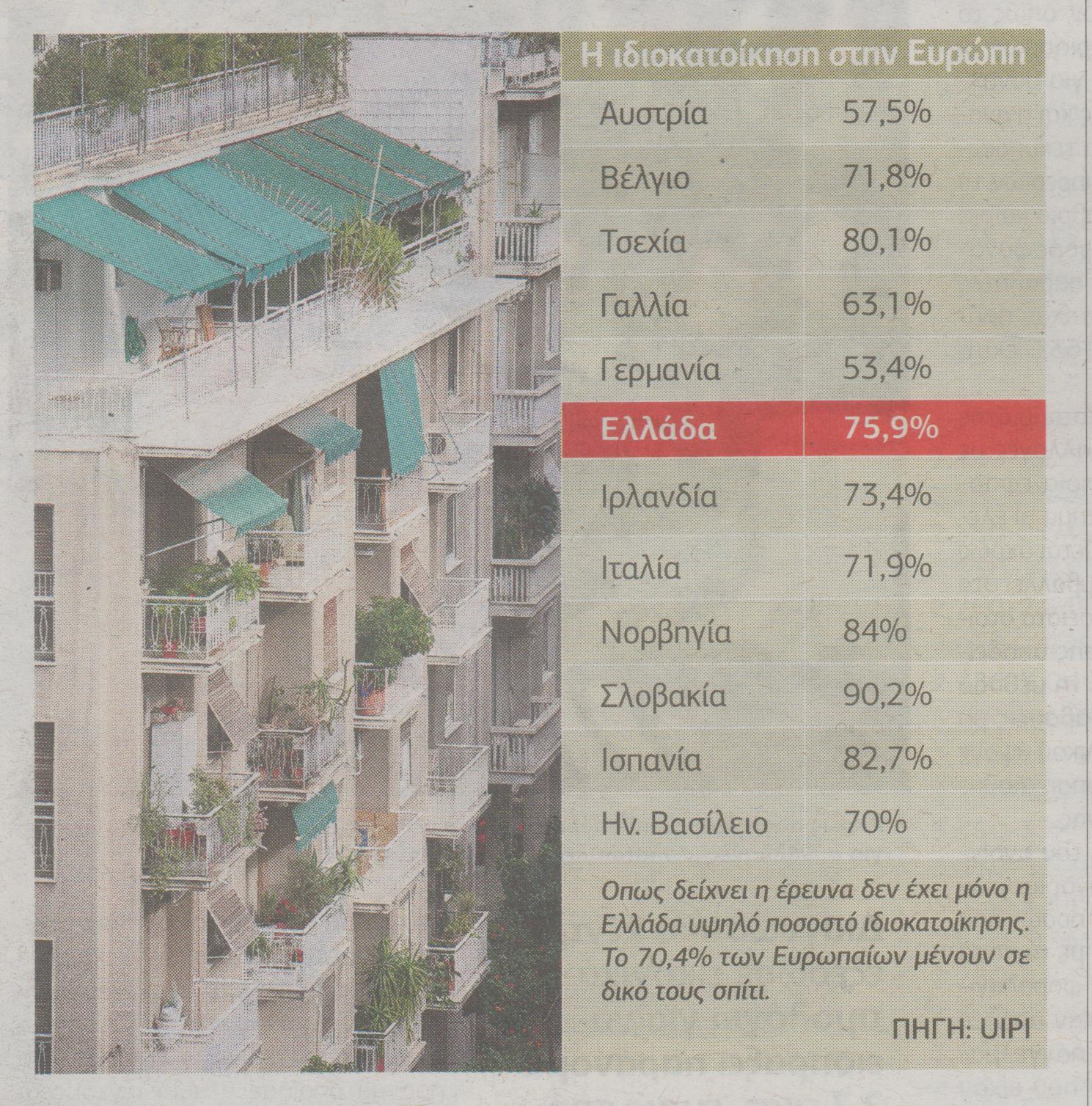 Η Ελλάδα είναι «πρωταθλήτρια» όχι μόνο στους φόρους που επιβάλλει στην ιδιοκτησία και στα εισοδήματα από ακίνητα, αλλά και στο καθεστώς προστασίας (ενοικιοστάσιο) που ισχύει εις βάρος των ιδιοκτητών, σύμφωνα με έρευνα της UIPI με τίτλο «Οι ιδιοκτήτες στην Ευρώπη» που παρουσιάστηκε χθες στο Ευρωκοινοβούλιο.