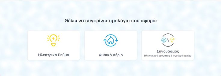 – Η δυνατότητα σύγκρισης είτε μεμονωμένων τιμολογίων Ηλεκτρισμού ή Φυσικού Αερίου ή και Συνδυαστικών προϊόντων που περιέχουν και τις δύο παροχές σε μια προσφορά.