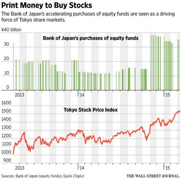 Η επικεφαλής της ΕΚΤ, Μάριο Ντράγκι, επαινεί την “ποσοτική χαλάρωση” που ρίχνει το κόστος δανεισμού των κρατών, αποδόσεις ομολόγων, αλλά παράλληλα ανησυχεί, κρυφά, ότι μπορεί να έχει την τύχη της ιαπωνικής τρύπας στο νερό καθώς η “εκτύπωση” χρήματος καταλήγει να ενισχύει σημαντικά μόνο τις μετοχές και όχι την πραγματική οικονομία.