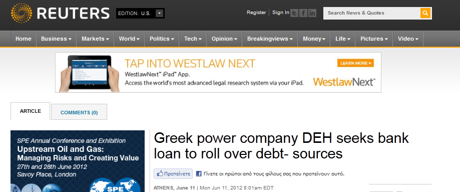 Reuters:Zήτησε δάνειο η ΔΕΗ