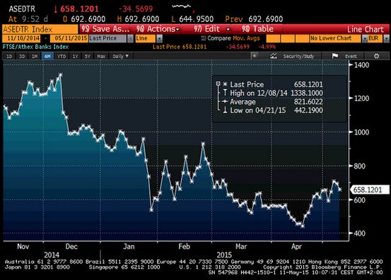Ο δείκτης των τραπεζών υποχωρεί σχεδόν 6,5%.