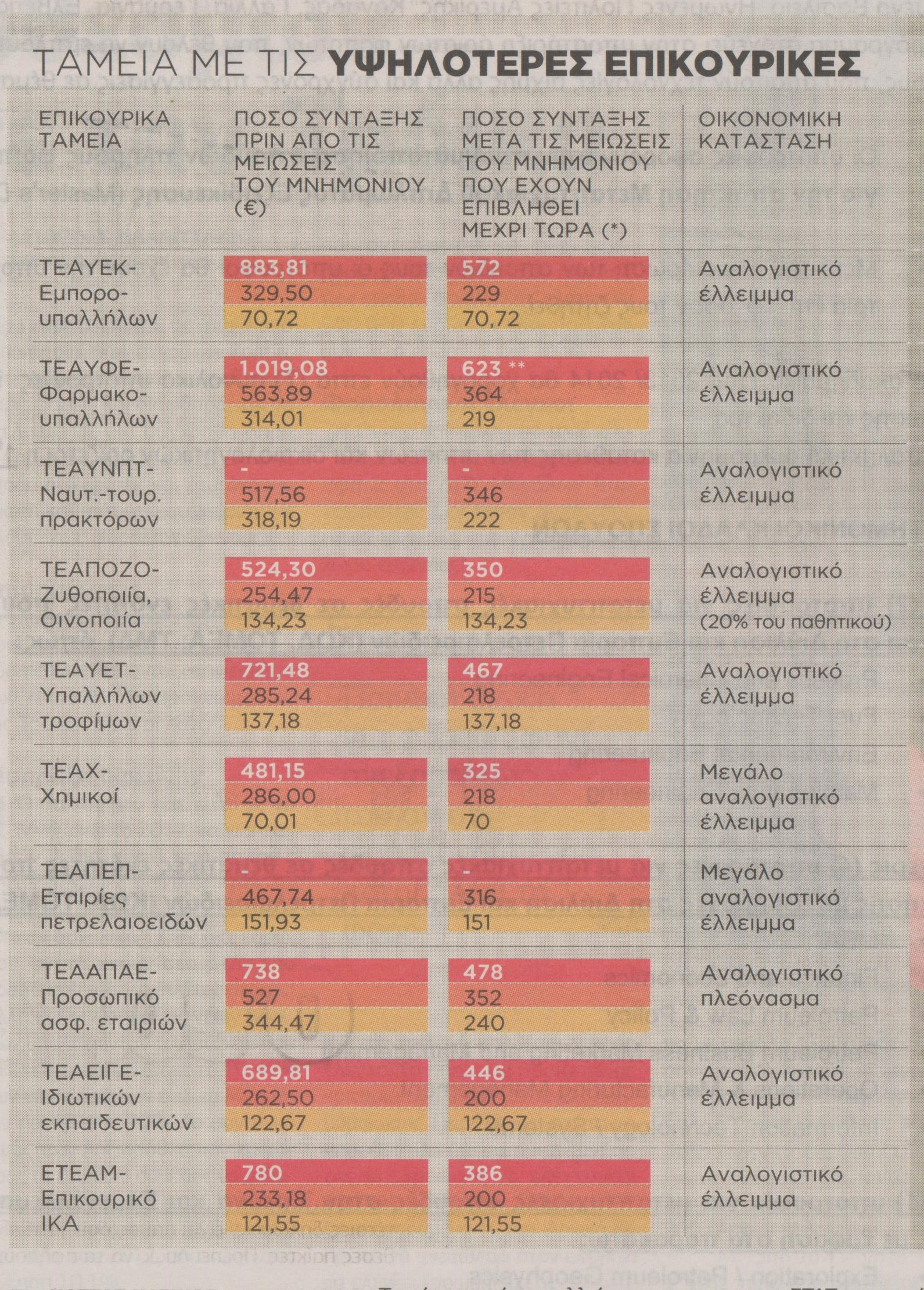 Μειώσεις επικουρικών συντάξεων που θα αποφασίζονται χωρίς νέα νομοθετική πρόβλεψη, αλλά με κριτήριο το μηδενισμό των ελλειμμάτων, φέρνει για περίπου 1 εκατ. συνταξιούχους η λειτουργία του Ενιαίου Ταμείου Επικουρικής Ασφάλισης (ΕΤΕΑ) στο οποίο ανήκουν οριστικά 35 επικουρικά ταμεία από Δημόσιο, ΔΕΚΟ, τράπεζες και ΙΚΑ, ενώ εξαιρούνται μόνο τέσσερα τα οποία αν και μετατρέπονται σε “επαγγελματικά”, εντούτοις ήδη προγραμματίζουν περικοπές ως και 35% για να συνεχίσουν να πληρώνουν συντάξεις.
