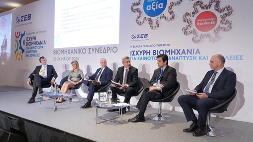 Με ιδιαίτερη επιτυχία και σημαντικές παρεμβάσεις πραγματοποιείται η δεύτερη ημέρα του Βιομηχανικού Συνεδρίου που διοργανώνει ο Σύνδεσμος Επιχειρήσεων και Βιομηχανιών (ΣΕΒ) με θέμα: «Η Ελλάδα πέρα από την κρίση. Ισχυρή βιομηχανία για καινοτομία, ανάπτυξη και δουλειές».