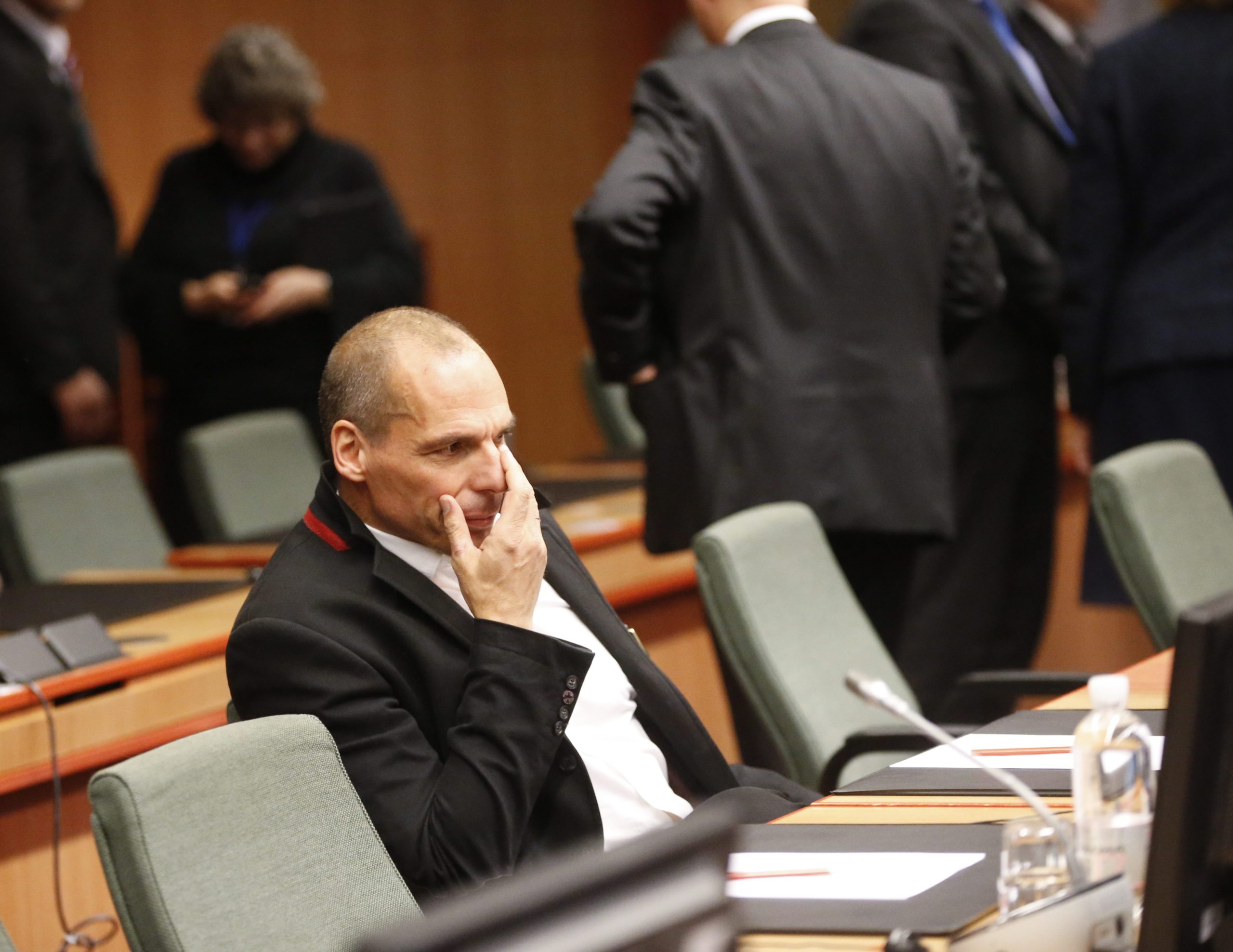 Ο Γιάνης Βαρουφάκης, μετά τις συναντήσεις που είχε με τον πρόεδρο του Eurogroup, Γερούν Ντάισελμπλουμ, την Γενική Διευθύντρια Κριστίν Λαγκάρντ και τον Επίτροπος Οικονομίας Πιερ Μοσκοβισί, προσήλθε στην αίθουσα όπου πραγματοποιείται η συνεδρίαση των υπουργών Οικονομικών.