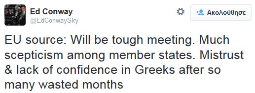 Πρόσθεσε ότι το «αποτέλεσμα της συζήτησης είναι απόλυτα ανοιχτό», ενώ και ευρωπαίος αξιωματούχος κάνει λόγο για “σκληρή συνάντηση” στο Eurogroup με “μπόλικο σκεπτικισμό”.