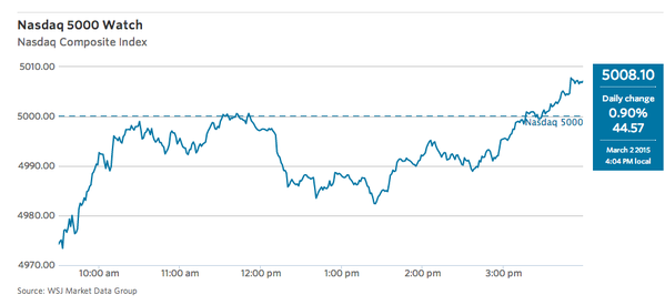 Ανοδικά έκλεισε η Wall Street, με τον δείκτη Nasdaq Composite να διασπά το όριο των 5.000 μονάδων για πρώτη φορά μετά από σχεδόν 15 χρόνια.
