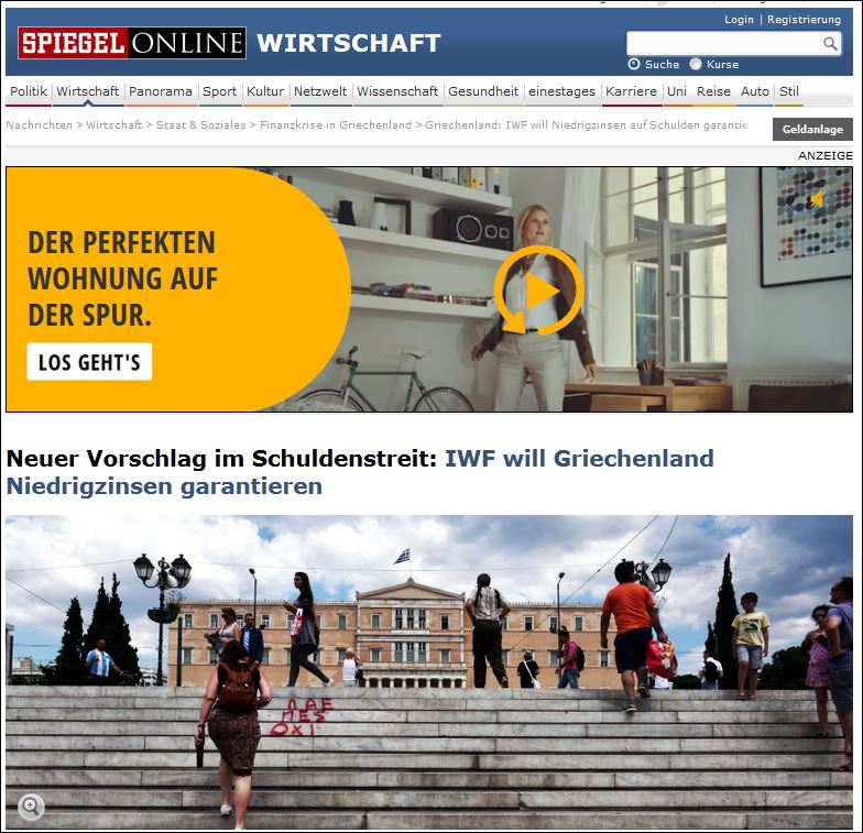 Την ίδια ώρα ωστόσο, όπως γράφει το Spiegel, ο ίδιος είναι αυτός που επιθυμεί ρητά την περαιτέρω συμμετοχή του Ταμείου, στο πρόγραμμα βοήθειας. Συγκεκριμένα, αναφέρει: «Προπάντων ο Γερμανός υπουργός Οικονομικών Βόλφγκανγκ Σόιμπλε, απορρίπτει την εν λόγω πρόταση. Ωστόσο, ο ίδιος επιθυμεί ρητά την περαιτέρω συμμετοχή του ΔΝΤ στο ελληνικό πρόγραμμα βοήθειας».