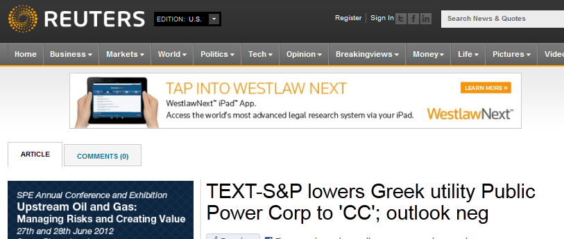 “Η ΔΕΗ είναι ευάλωτη στις τεταμένες συνθήκες λειτουργίας και χρηματοδότησης στην Ελλάδα.Επιπλέον, τώρα πιστεύουμε τώρα ότι υπάρχει τουλάχιστον μία στις τρεις πιθανότητες η Ελλάδα να αποχωρήσει από την ευρωζώνη“, αναφέρει ο οίκος αξιολόγησης.
