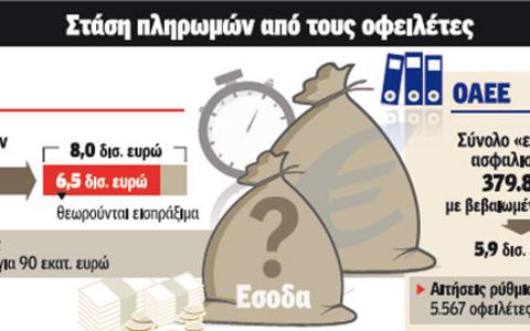 Για την περιορισμένη ανταπόκριση των οφειλετών στις νέες «σφιχτές» (και ως προς τον αριθμό των δόσεων και ως προς τις ζητούμενες «εξασφαλίσεις») ρυθμίσεις ενημέρωσε χθες τον πρωθυπουργό Αντ. Σαμαρά ο υπουργός Εργασίας, Κοινωνικής Ασφάλισης και Πρόνοιας Γιάννης Βρούτσης, παρουσιάζοντας, παράλληλα, τις «διευκολύνσεις» που γίνονται (μη υποχρέωση προσκόμισης φορολογικής ενημερότητας και αύξηση από τις 30 εργάσιμες ημέρες στους 6 μήνες της προθεσμίας για την υποβολή οικονομικών στοιχείων και την κατάθεση εγγυήσεων) για την προσέλκυση περισσοτέρων οφειλετών στο… ταμείο. Και αυτό υπό την άμεση πίεση που υπάρχει: