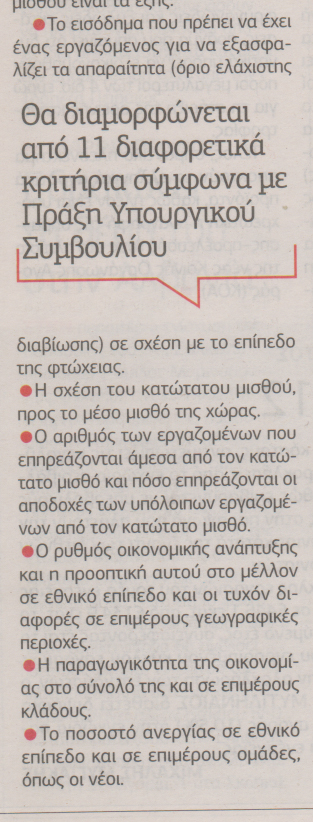 Δείτε στο δημοσίευμα παρακάτω τα κριτήρια που θα λαμβάνονται υπόψη για το ύψος του κατώτατου μισθού: