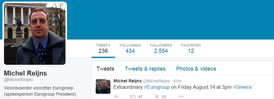 Δείτε το tweet του Μισέλ Ρέινς, εκπροσώπου του προέδρου του Eurogroup Γερούν Ντάισελμπλουμ.