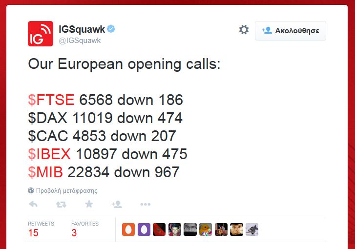 Η σκυτάλη της πτώσης περνά από την Ανατολή στη Δύση. Από την Αυστραλία, την Ιαπωνία, την Κίνα και τις άλλες ασιατικές αγορές, περνά στην Ευρώπη.